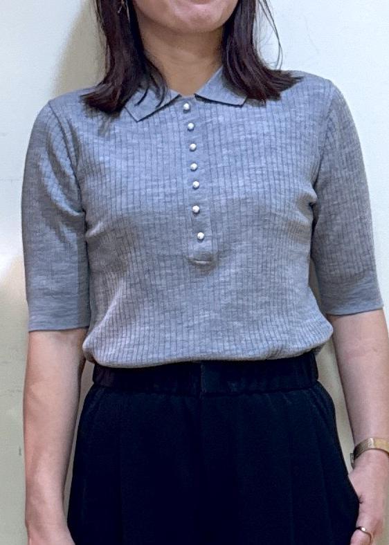 ROPÉパール釦ポロニット/イージーケアグレー / F¥19,800レビュー163センチ Fサイズ着用