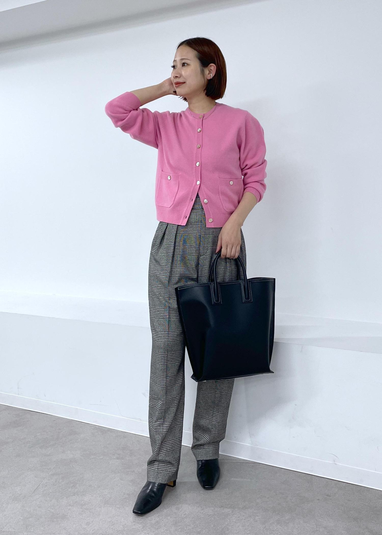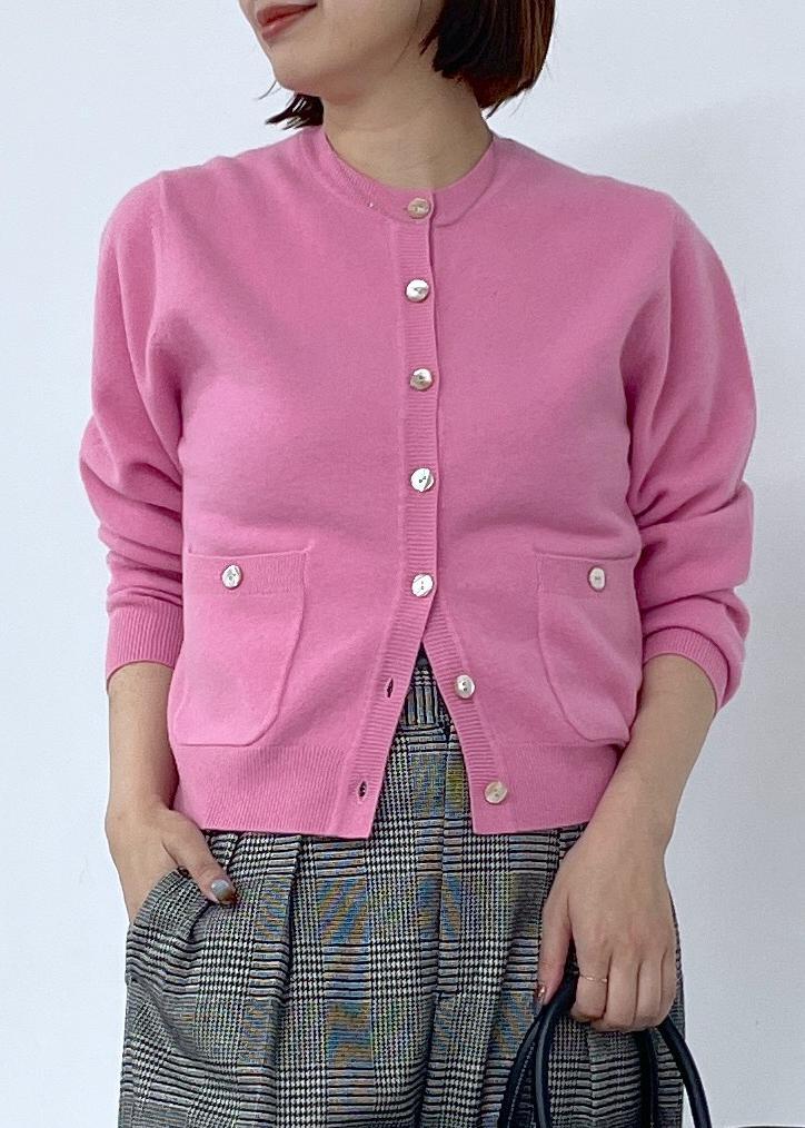 ROPÉ【一部WEB限定】ウールカシミヤ ブレンドニットカーディガン/イージーケアピンク系 / F¥27,500レビュー腰骨にかかるほどでベーシックなシルエットのカーディガンです。