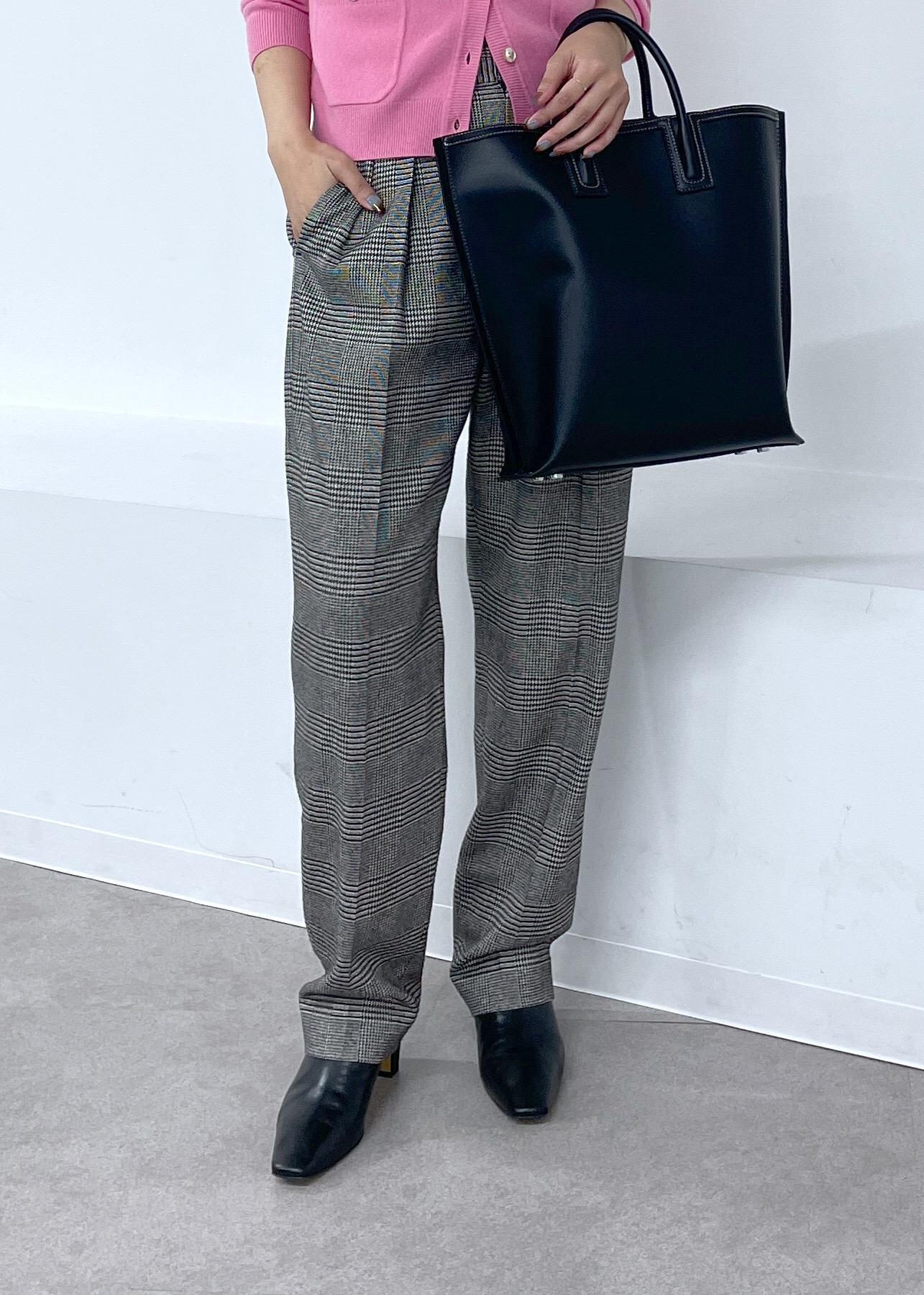 ROPÉウールレーヨンクラシック2タックパンツ(ヘリンボーン/グレンチェック)/セットアップ対応ブラック系 / 38¥27,500レビュー161cmで38サイズ着用。