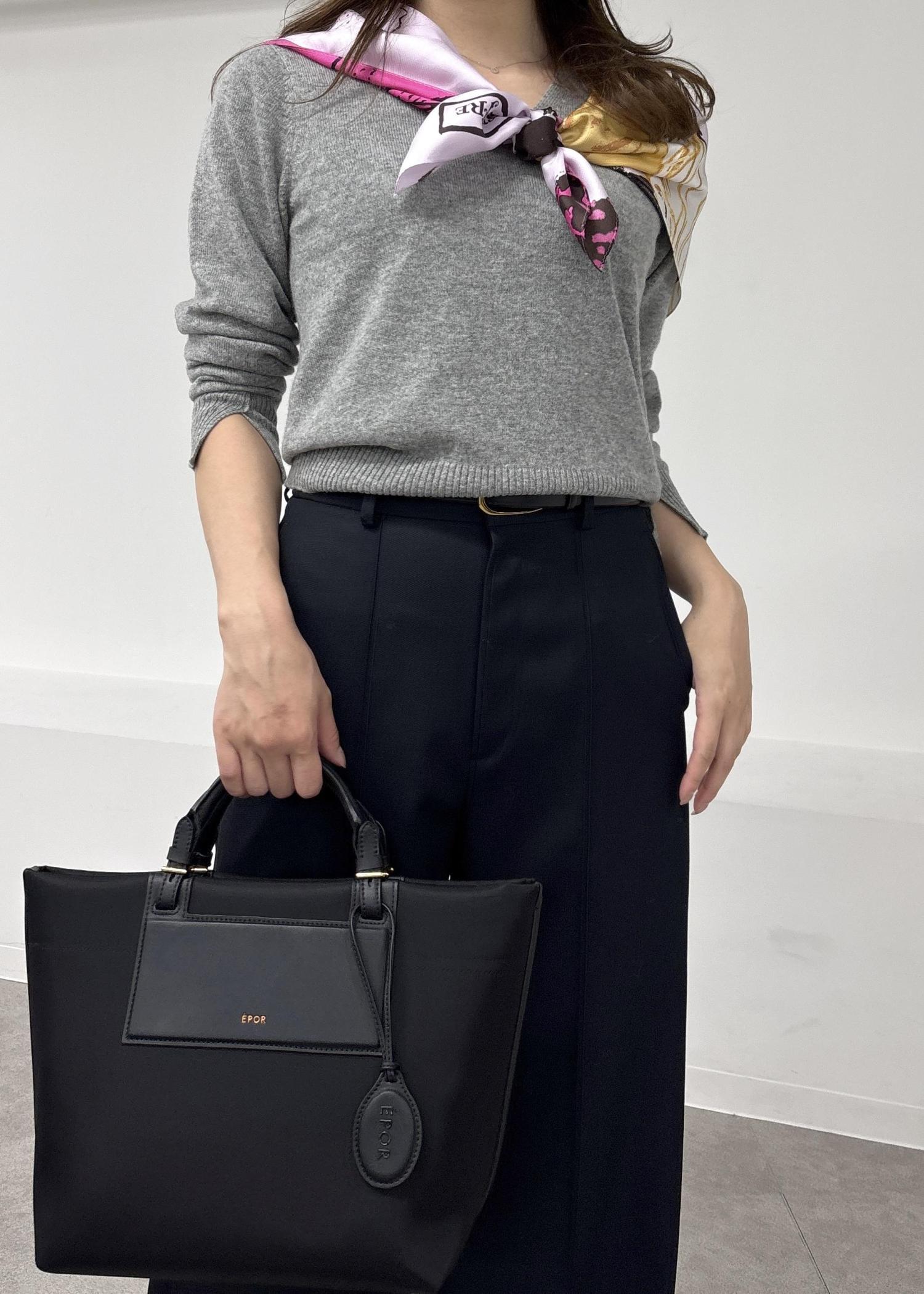 NEW!ROPÉ【E'POR】【撥水加工・超軽量】 BOAT BAG Medium【25AW】ブラック / F¥18,700レビュー外側に撥水のナイロン生地を使用し、内側はポリエステル素材のフェイクスウェード生地を使用。とても軽量で急な天候の変化にも左右されず安心してお使いいただけます。A4サイズの収納も可能なのでお仕事シーンにもおすすめ。お財布や携帯など必需品+折りたたみ傘や500mlの飲み物、カーディガンなど軽い羽織も入ります。