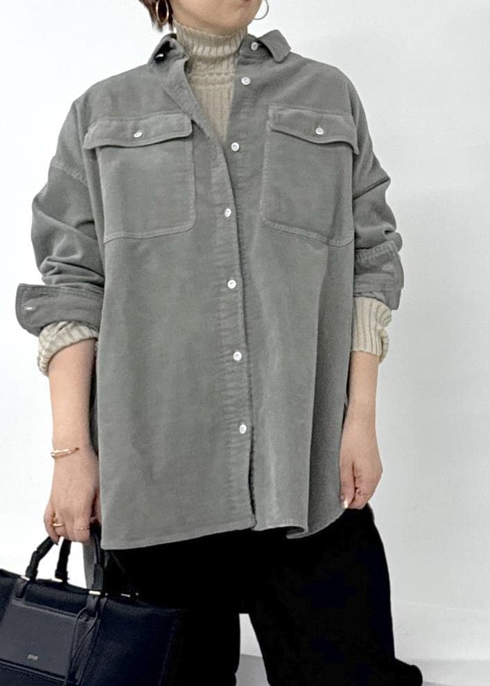 絶妙なくすみカラーがお洒落なコーデュロイシャツ。