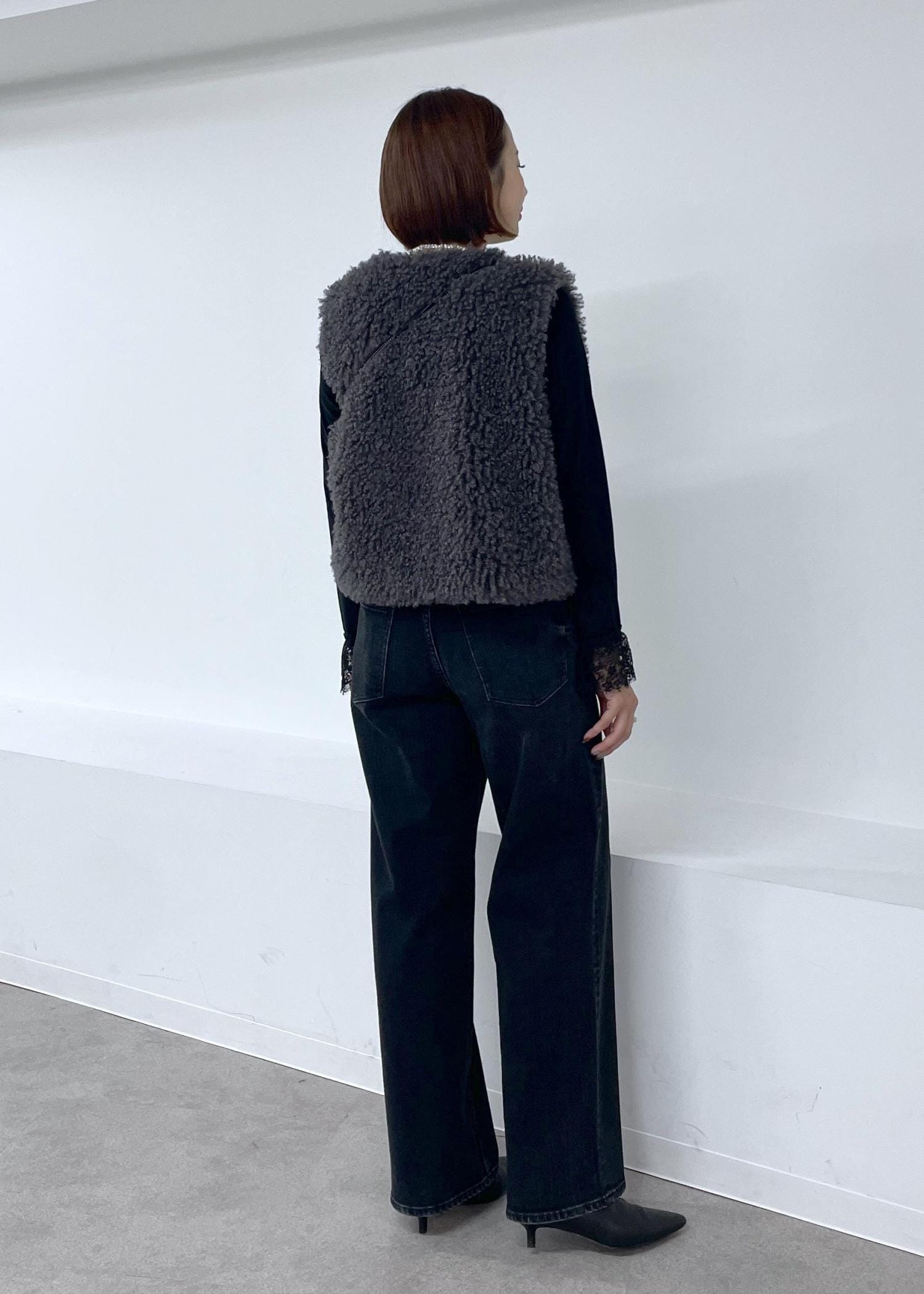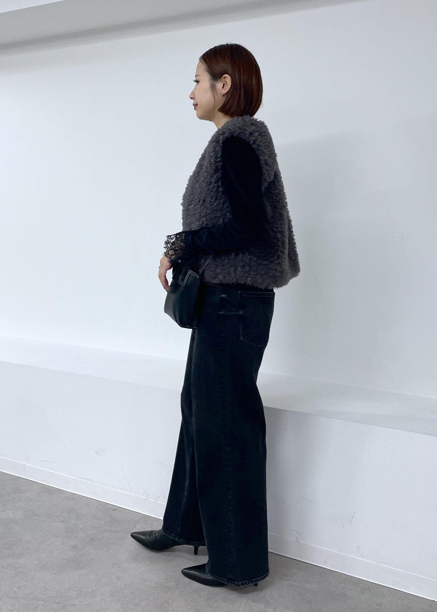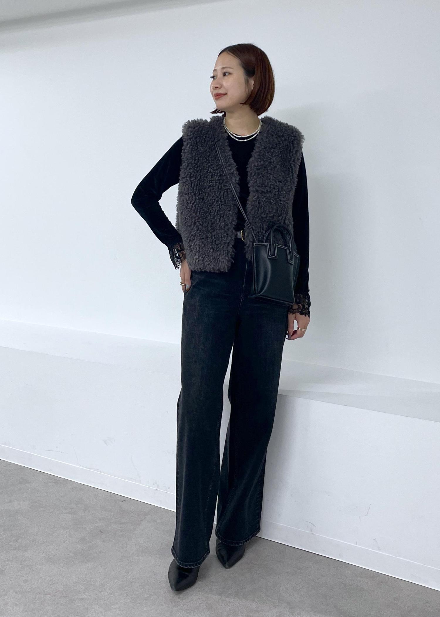 着丈がコンパクトなジレなのでボトムにボリュームのあるものを合わせてもスッキリと見えバランス感が取りやすかったです。