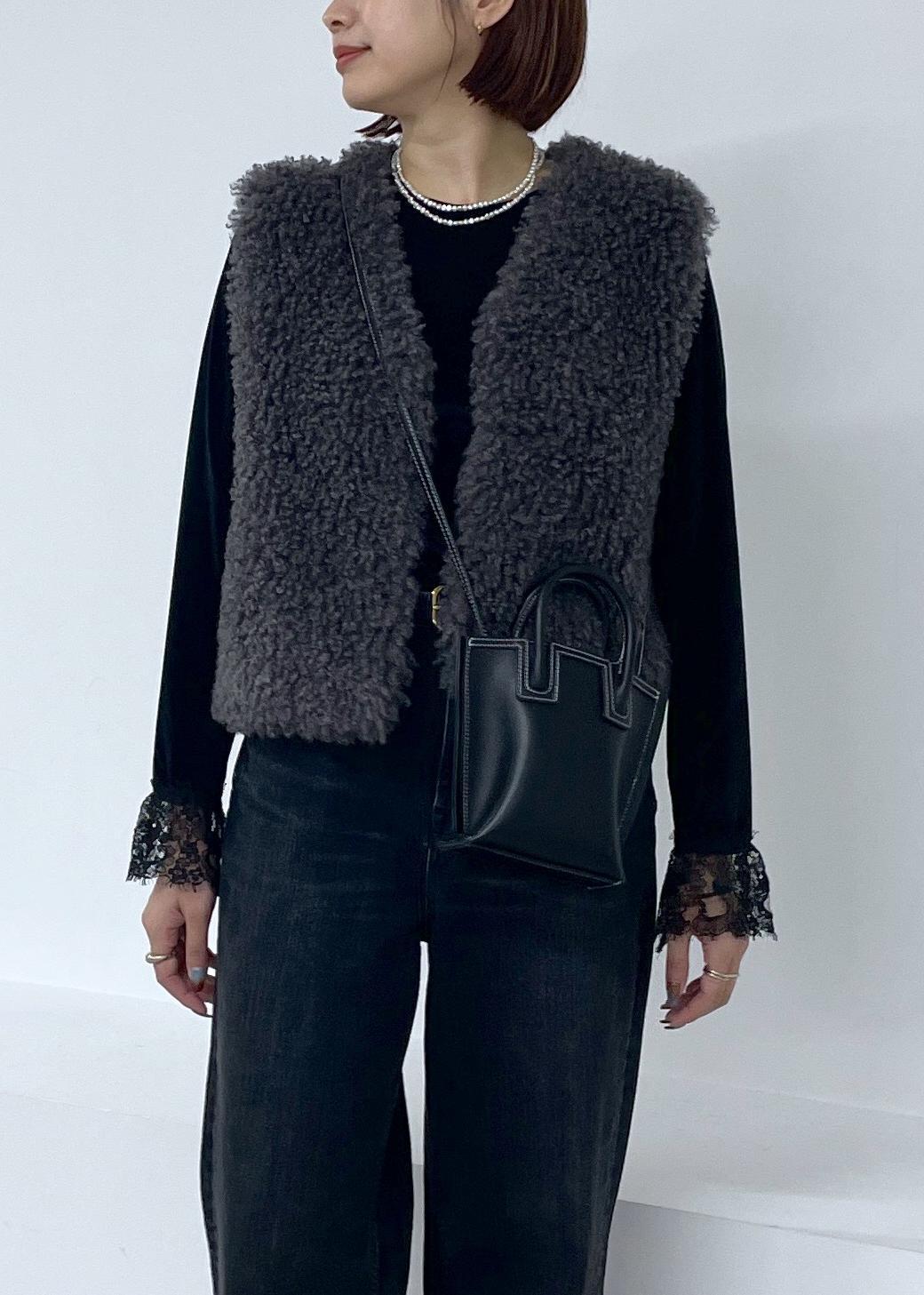 ROPÉフェイクファー ジレ ベストグレー / F¥38,500レビュー161cmフリーサイズを着用。