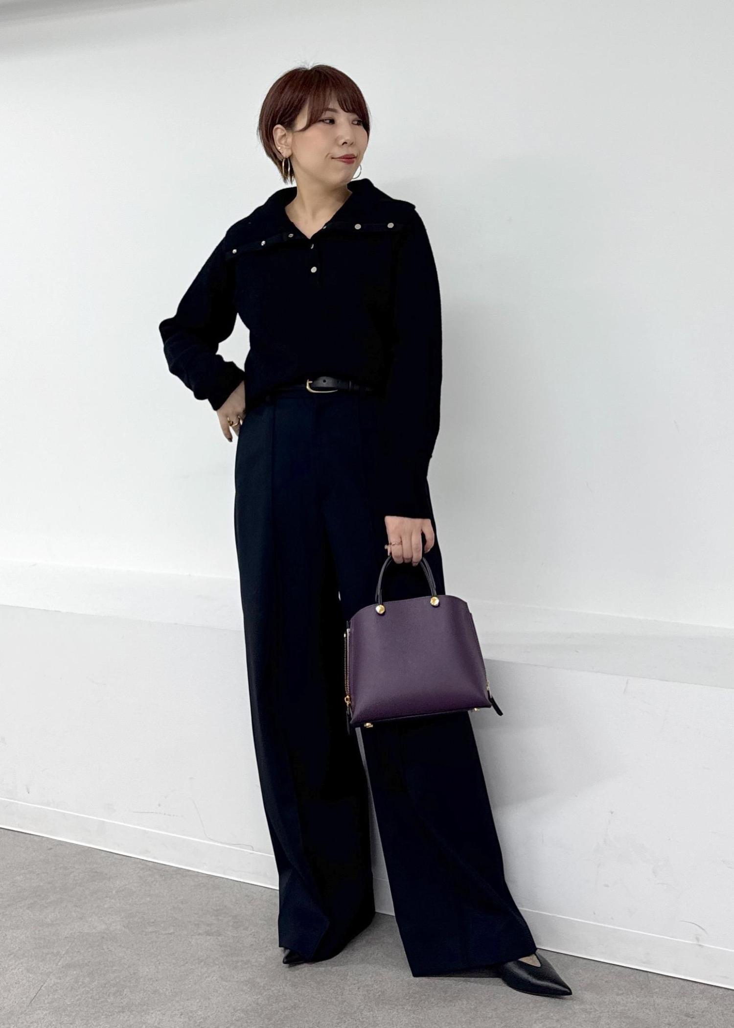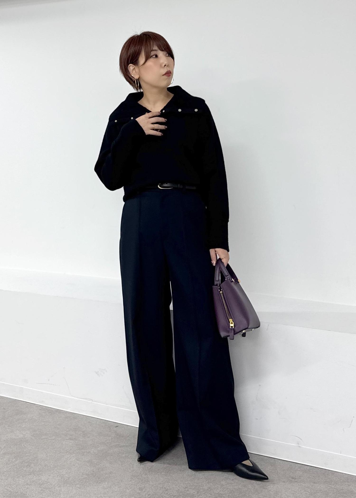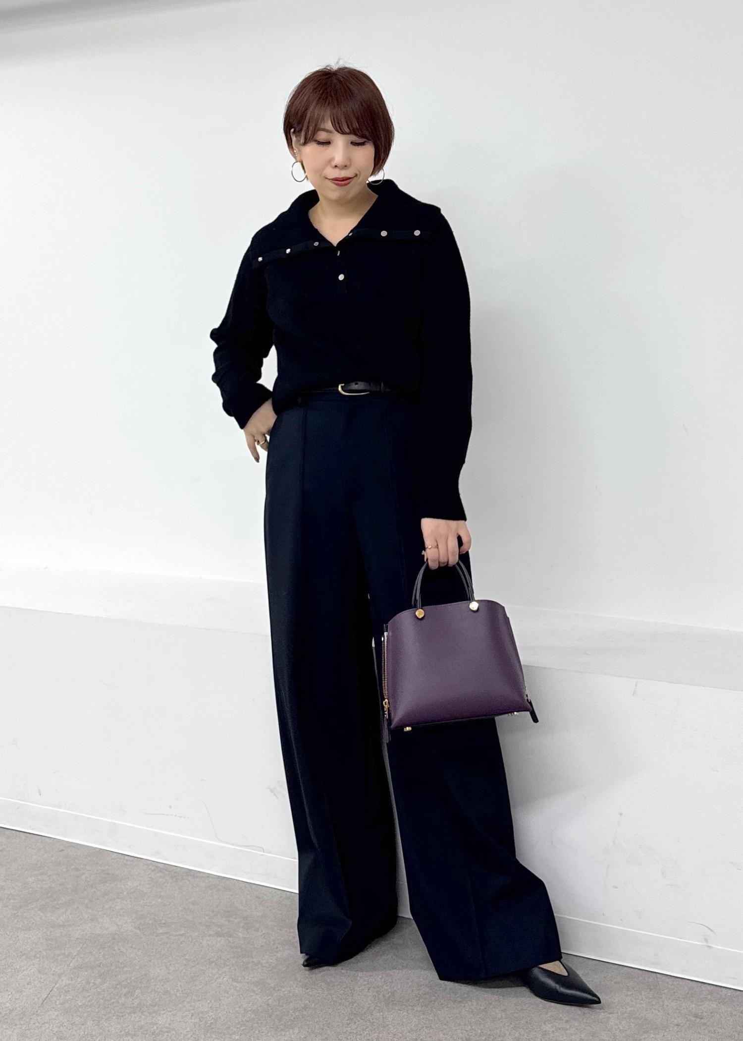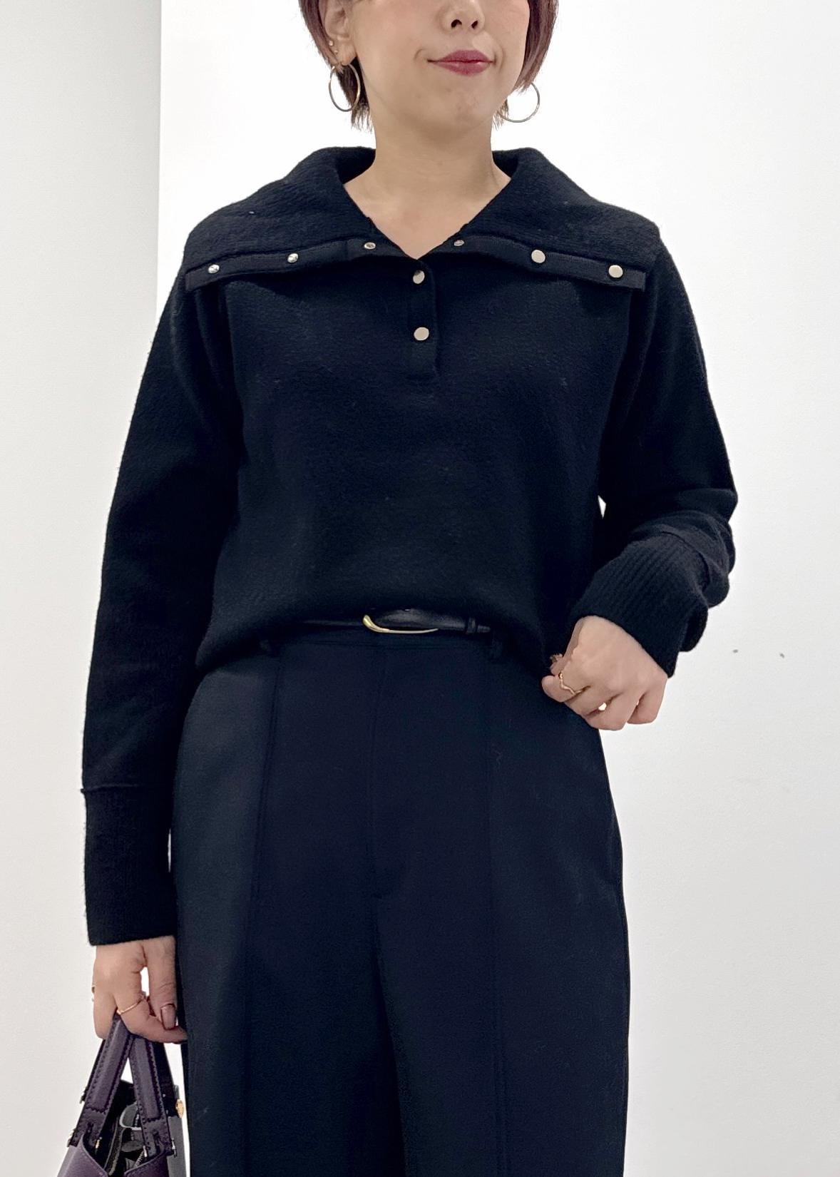 ROPÉ接結ウールドットボタンハイネックニット/イージーケアブラック / F¥28,600レビューリラックス感もありつつカジュアルすぎないのが