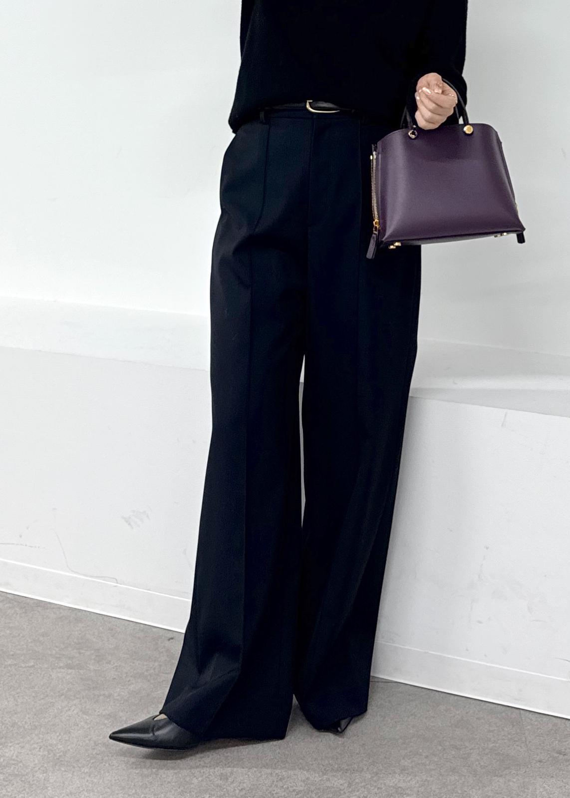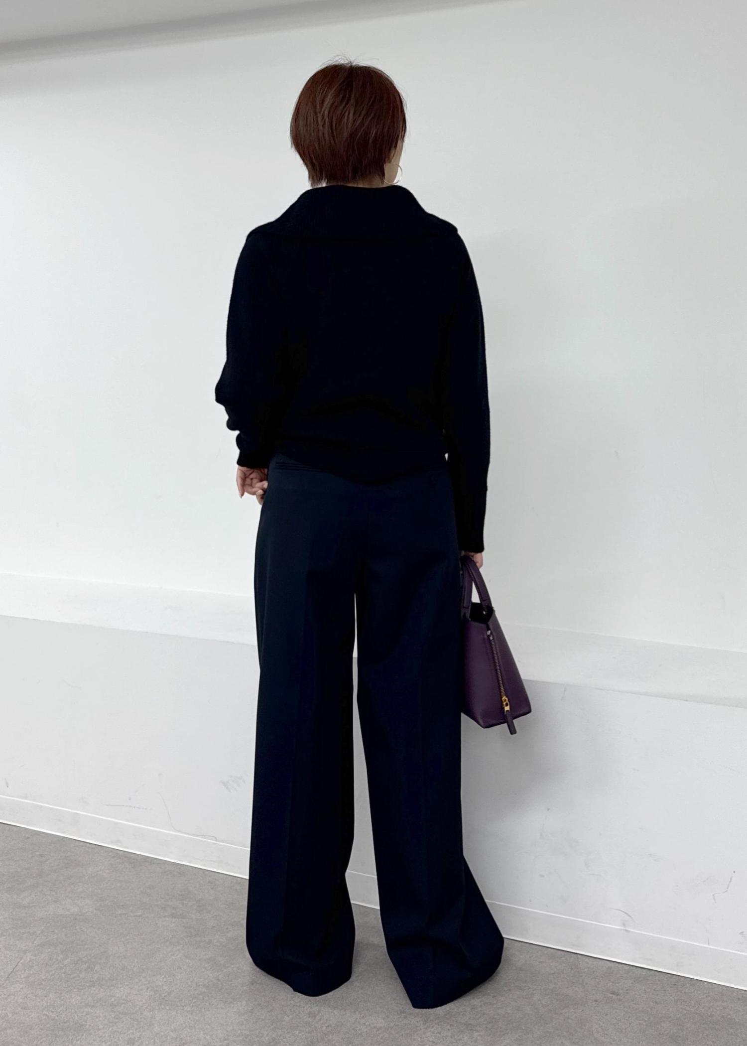 ROPÉ梳毛ギャバ プリーテッド ワイドパンツブラック / 38¥29,700レビュー程よくハリ感のある素材。