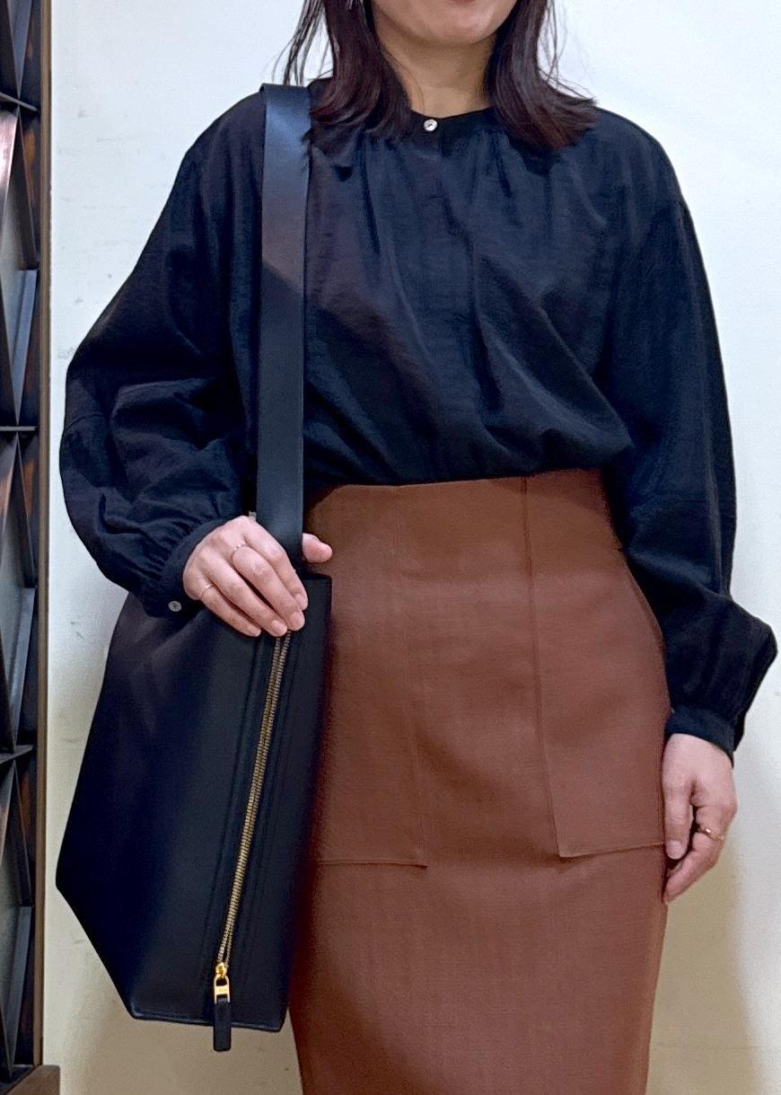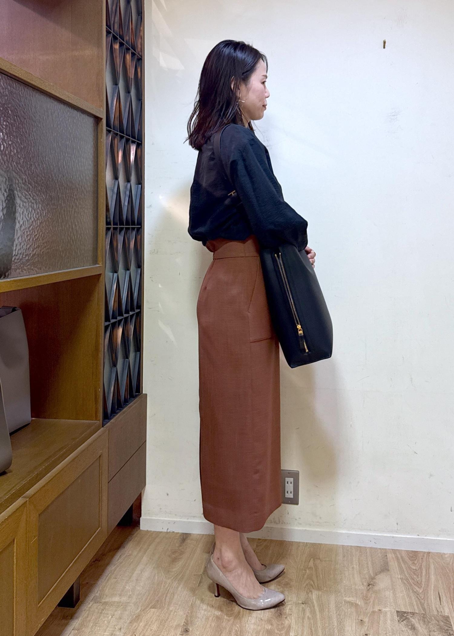 お袖がポイントのブラウスをスッキリタイトスカートとコーディネート♡