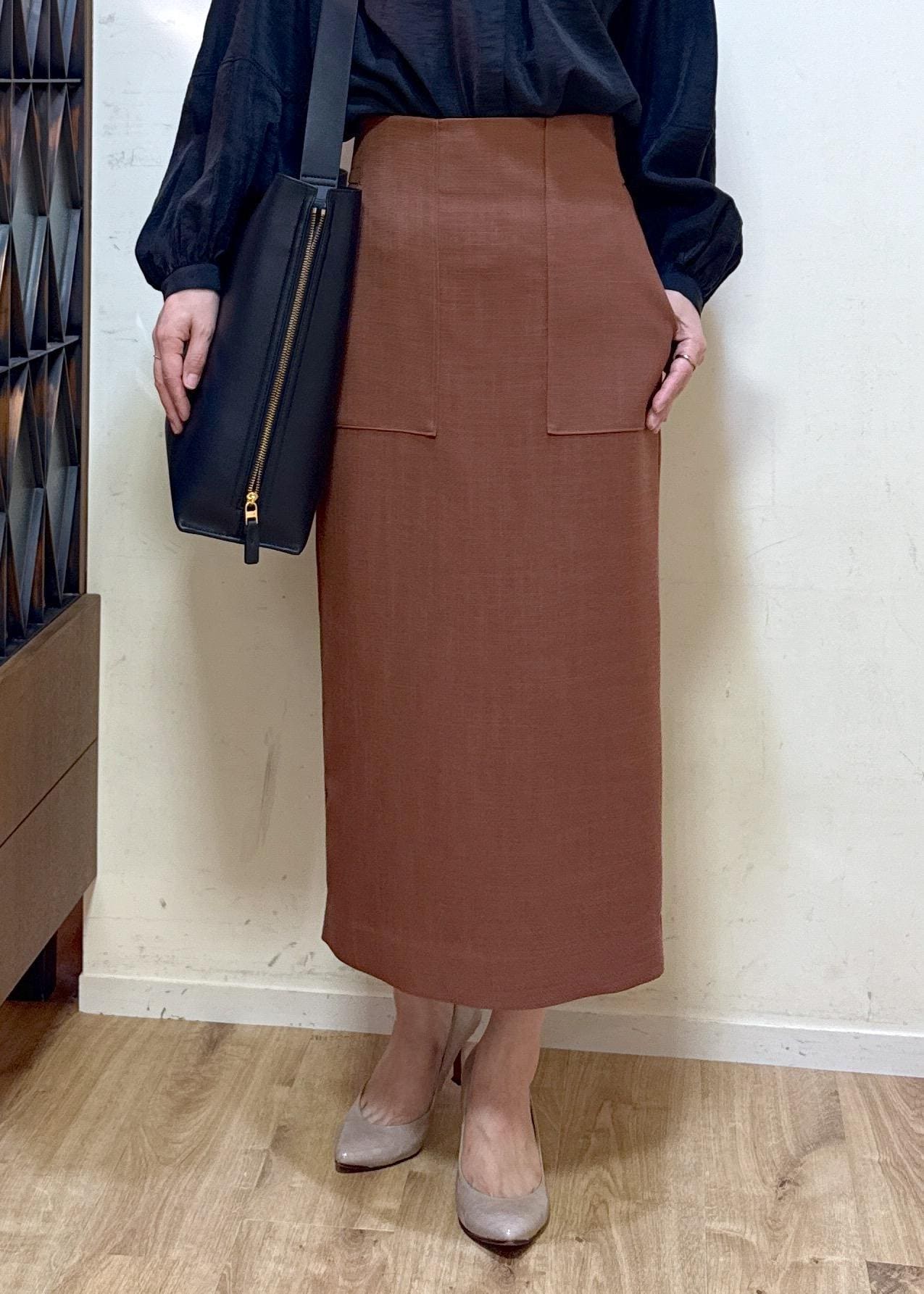 ROPÉリネンライク ポケット付きタイトスカート/イージーケアブラウン / 36¥20,900レビュー163センチ 36サイズ着用