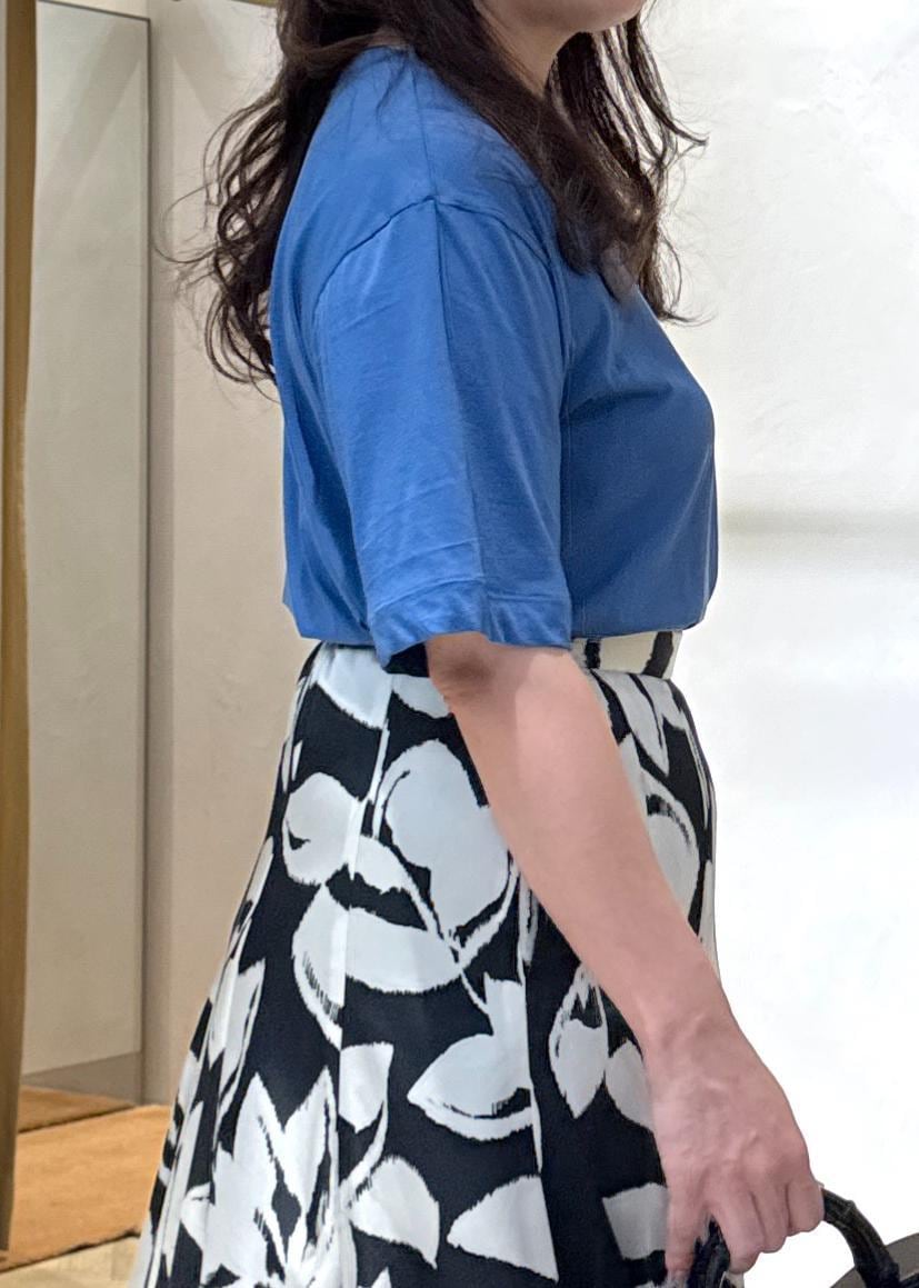 ゆったりすぎないシルエットはスッキリとしつつフィットもしていないので体のラインは気になりません。