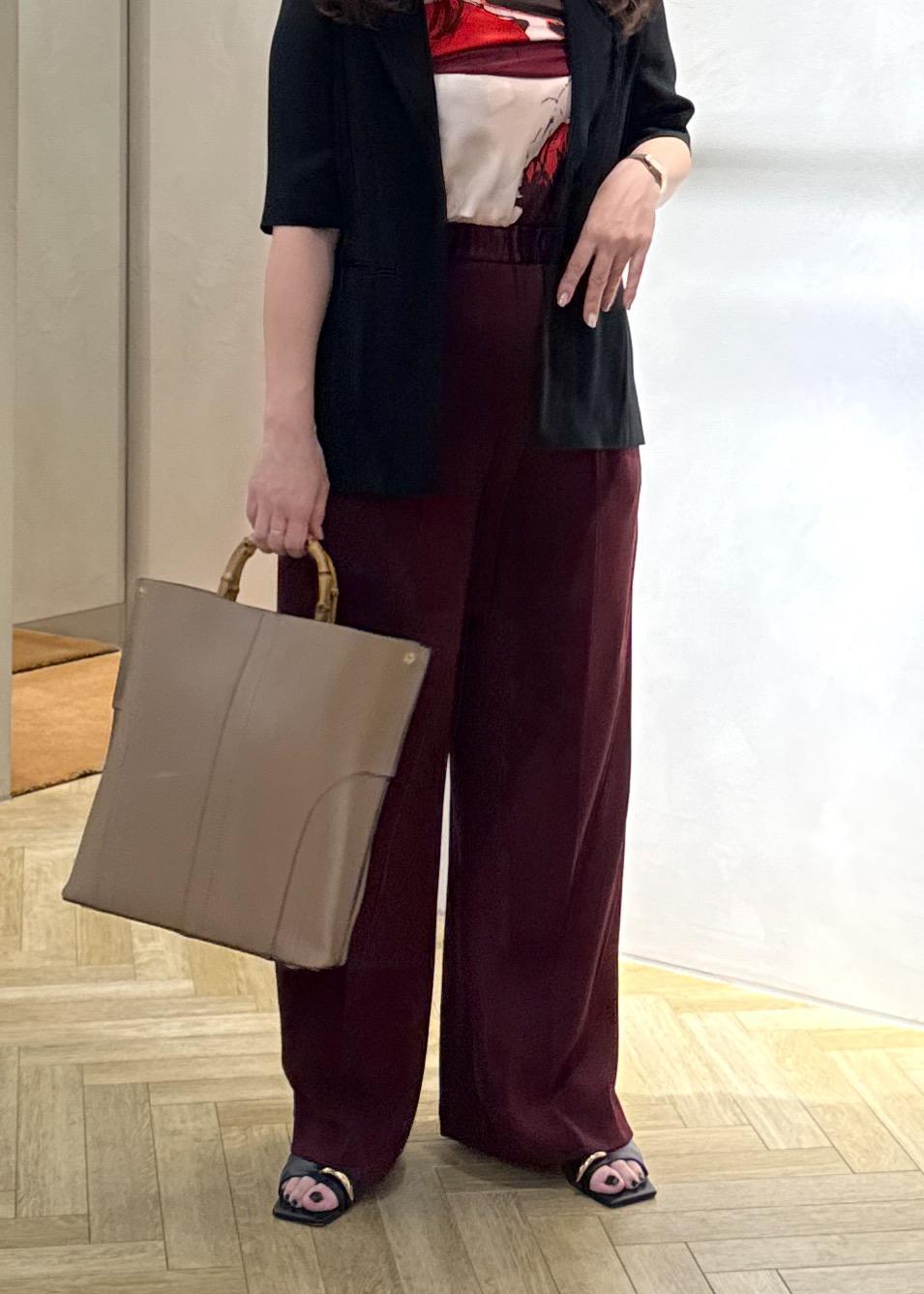 ROPÉ【洗える・カセット服】ライトトリアセイージーワイドパンツ/お仕事・通勤・セットアップ対応ワイン / 38¥25,300レビュー38サイズを履いています。