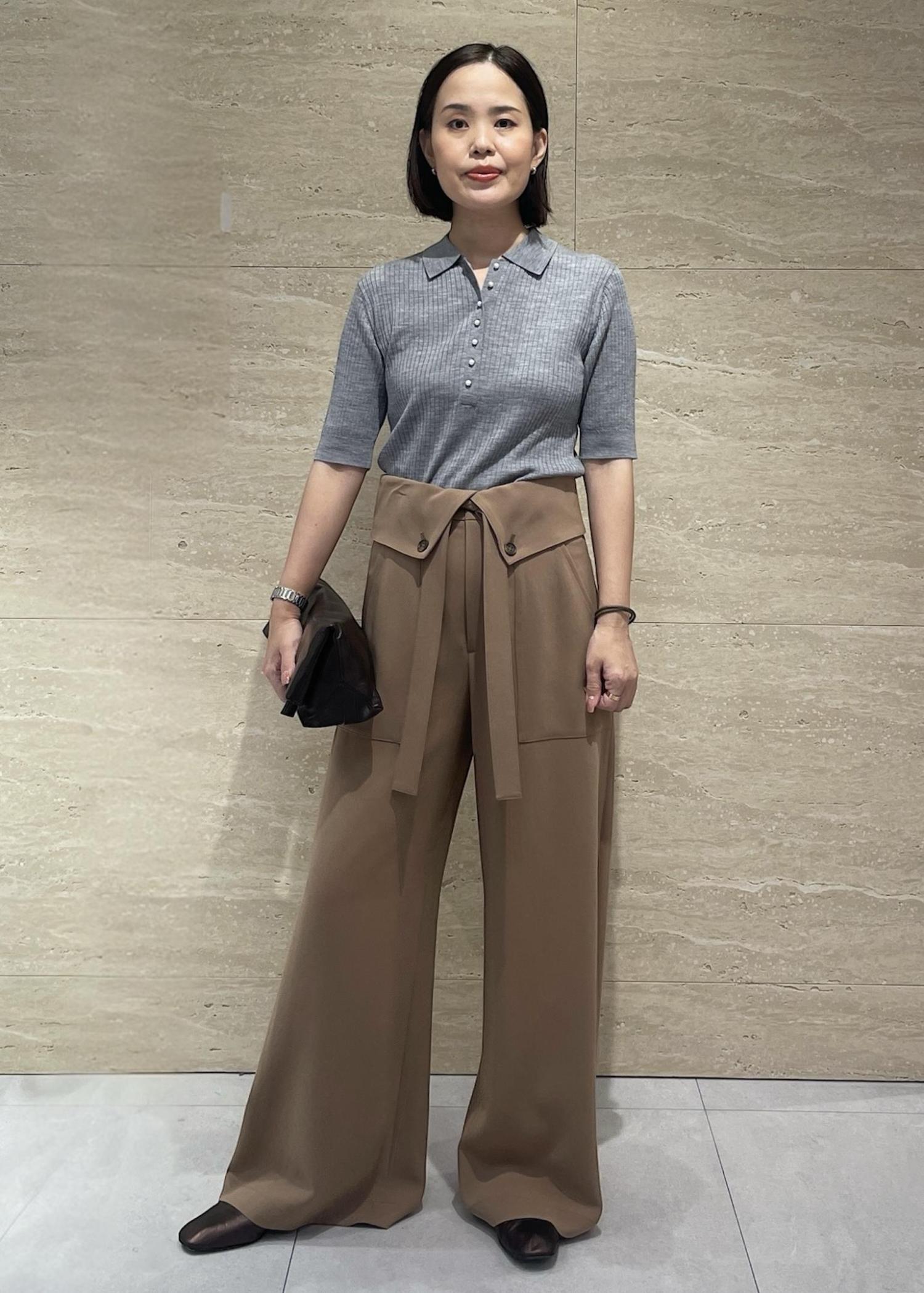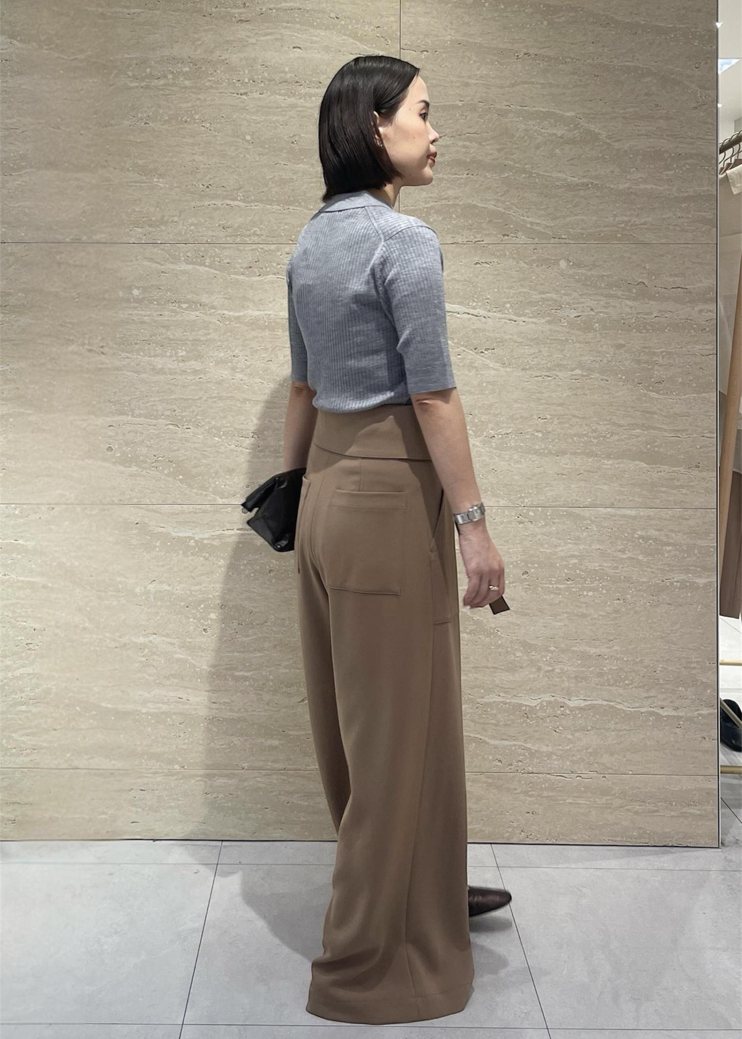 素材は落ち感があり、ストレッチも効いているので履きやすく、スタイルアップして見せてくれます。