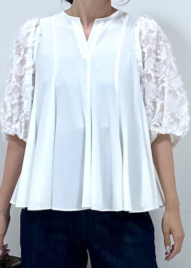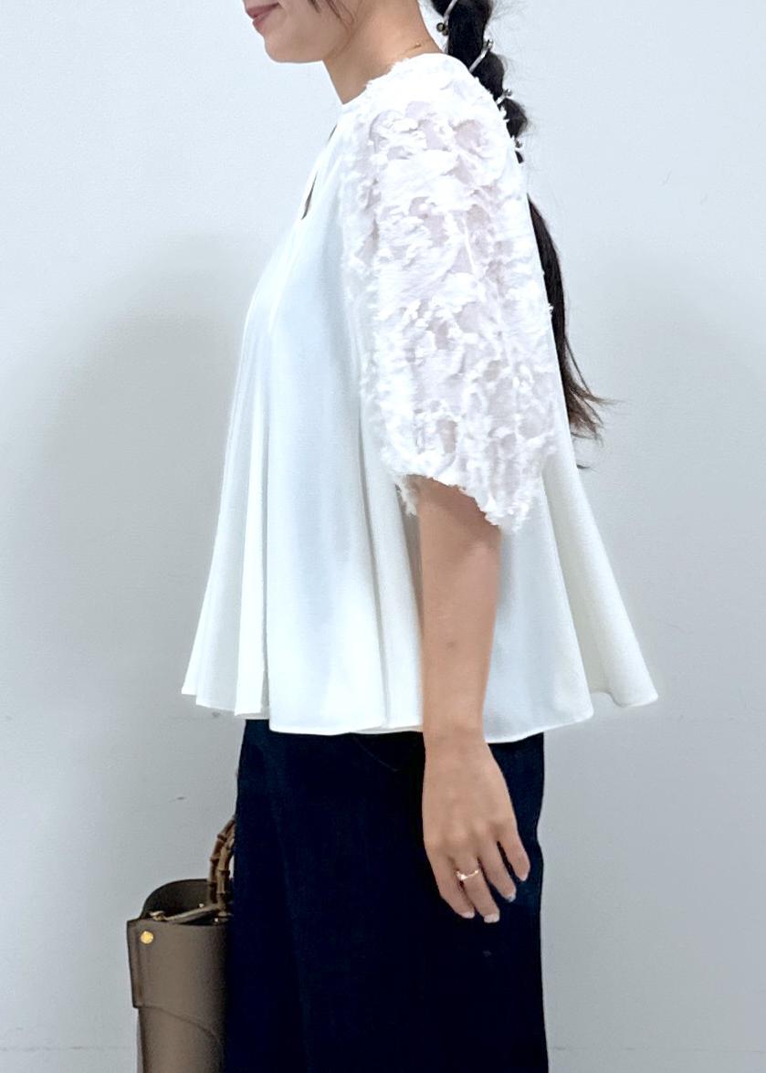 ROPÉジャガードスリーブコンビブラウス/イージーケアホワイト / F¥19,800レビュードライタッチな生地感で肌離れが良く、シワになりにくいので暑い季節も快適にお使いいただけます◎