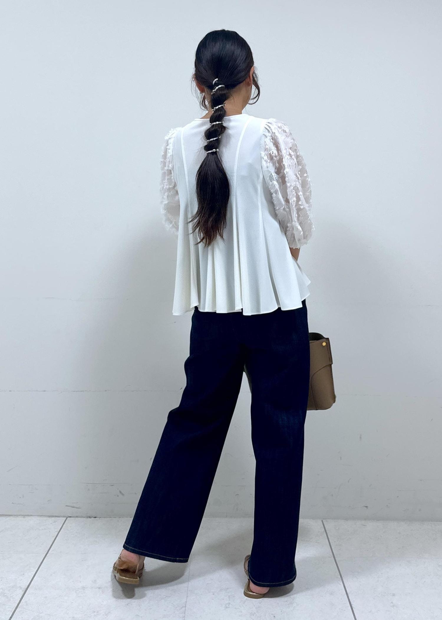 スッキリとした落ち感のあるペプラムシルエットで揺れ感も綺麗なので、カジュアルから綺麗めシーンまで使える万能アイテムです。 -
