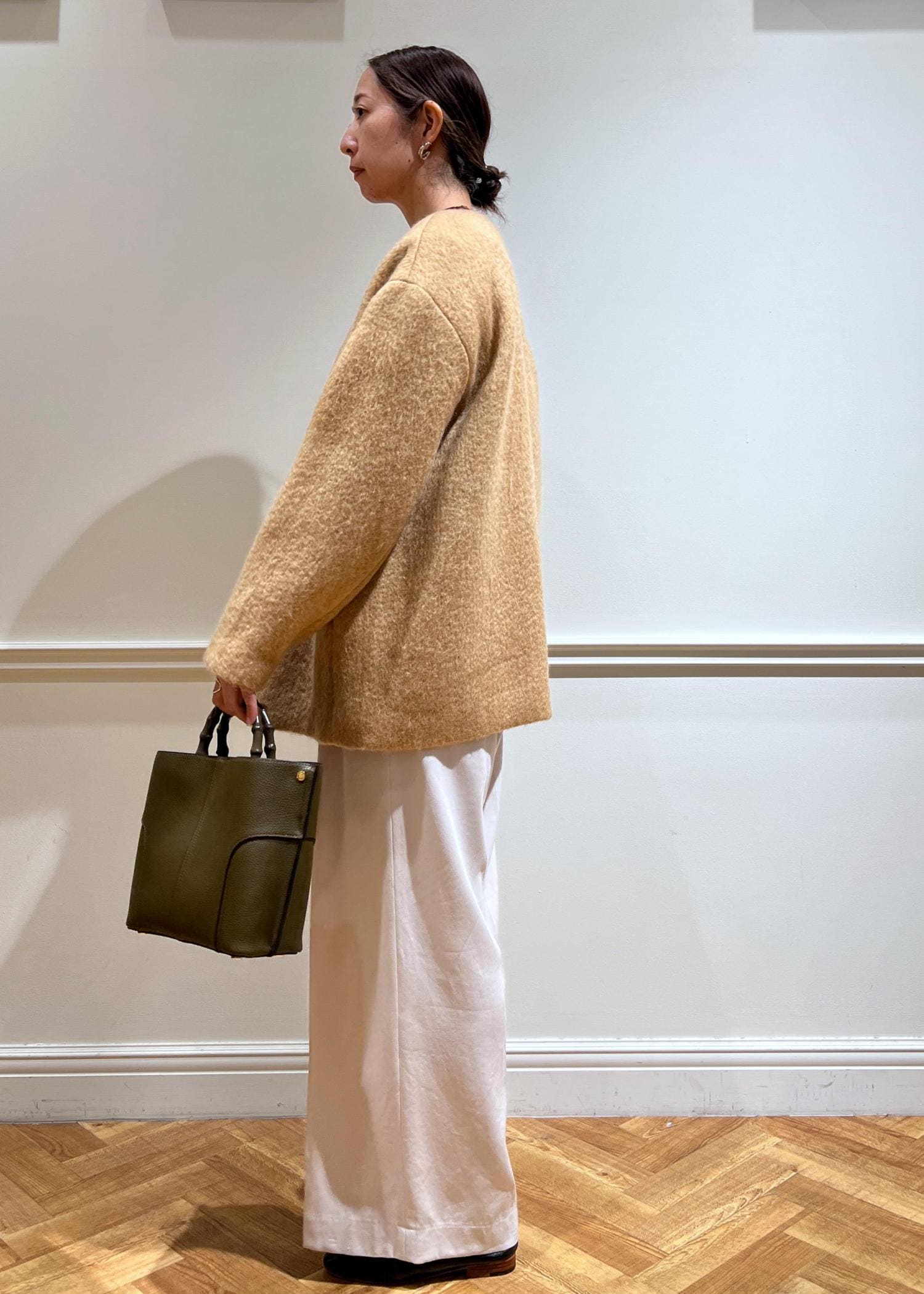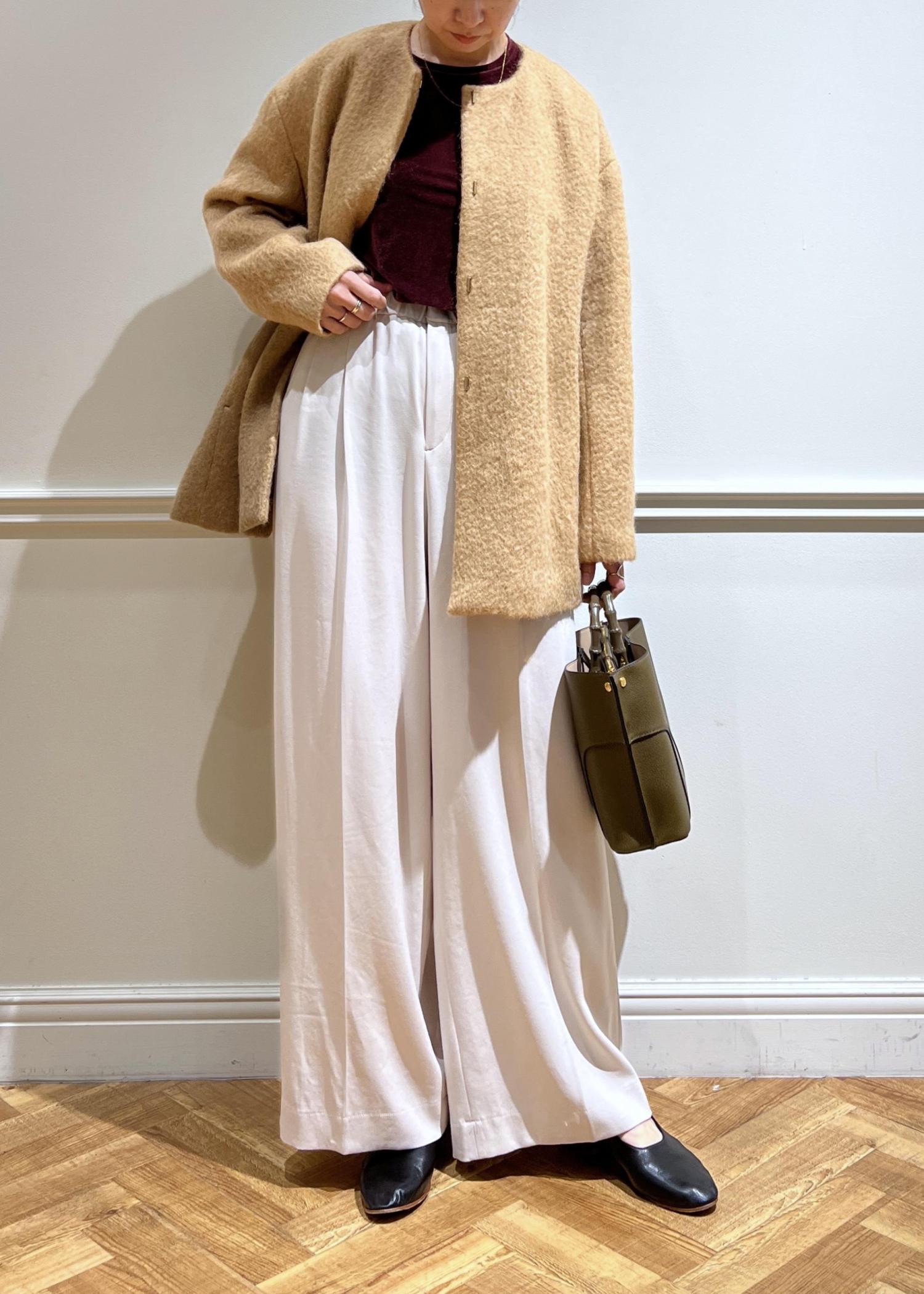 ROPÉウールモヘヤノーカラーミドル丈コートベージュ / F¥68,200レビュー760gと、ミドル丈ながらとても軽量でストレスフリーな着心地です。普段38、ボトムは40も選ぶ体型ですが、ゆったりした着心地でふわっと包まれている様な感覚になります。