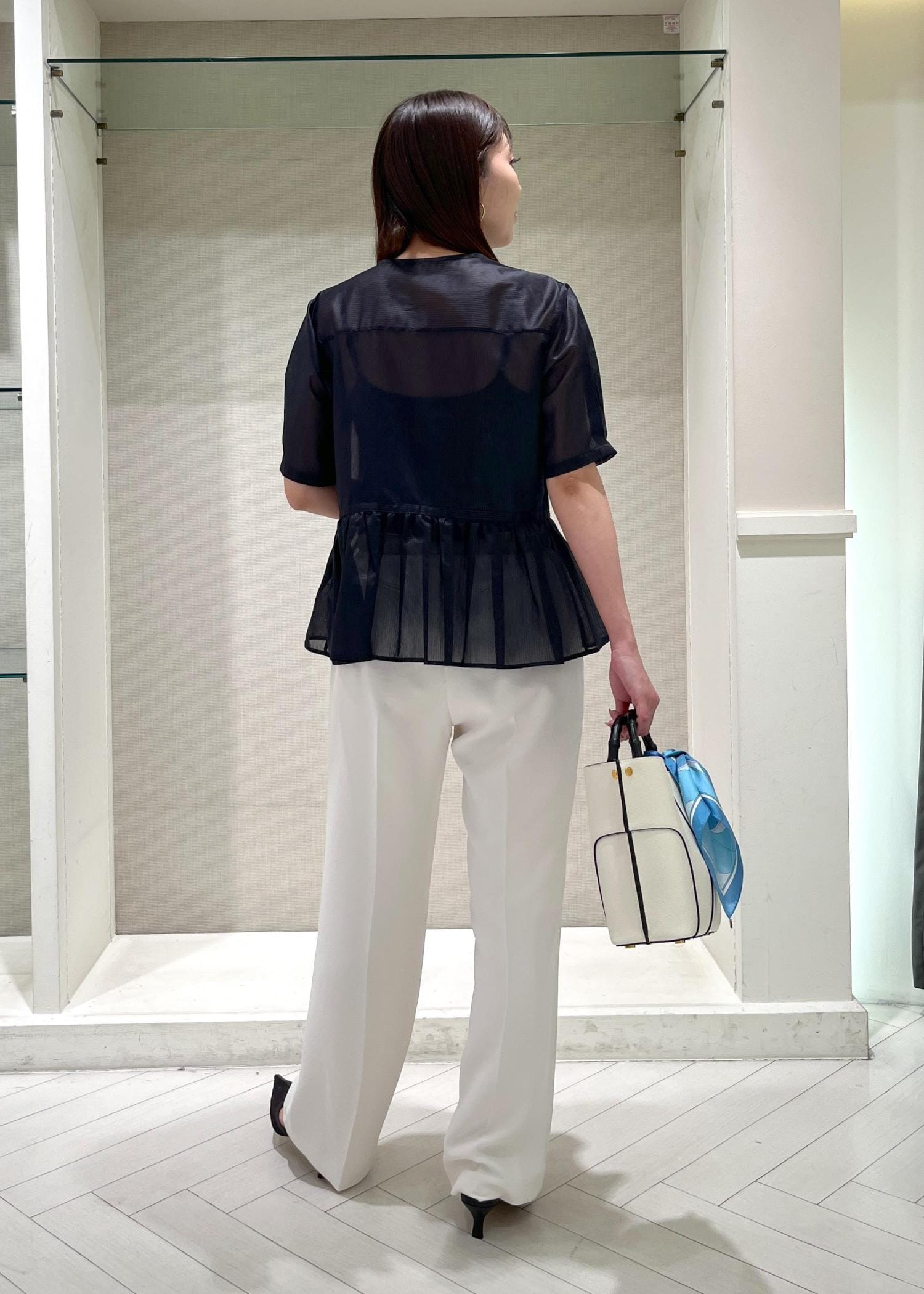 ウエスト部分を少しシェイプさせた、女性らしい立体感のあるシルエットなのでパンツスタイリングに相性抜群です!