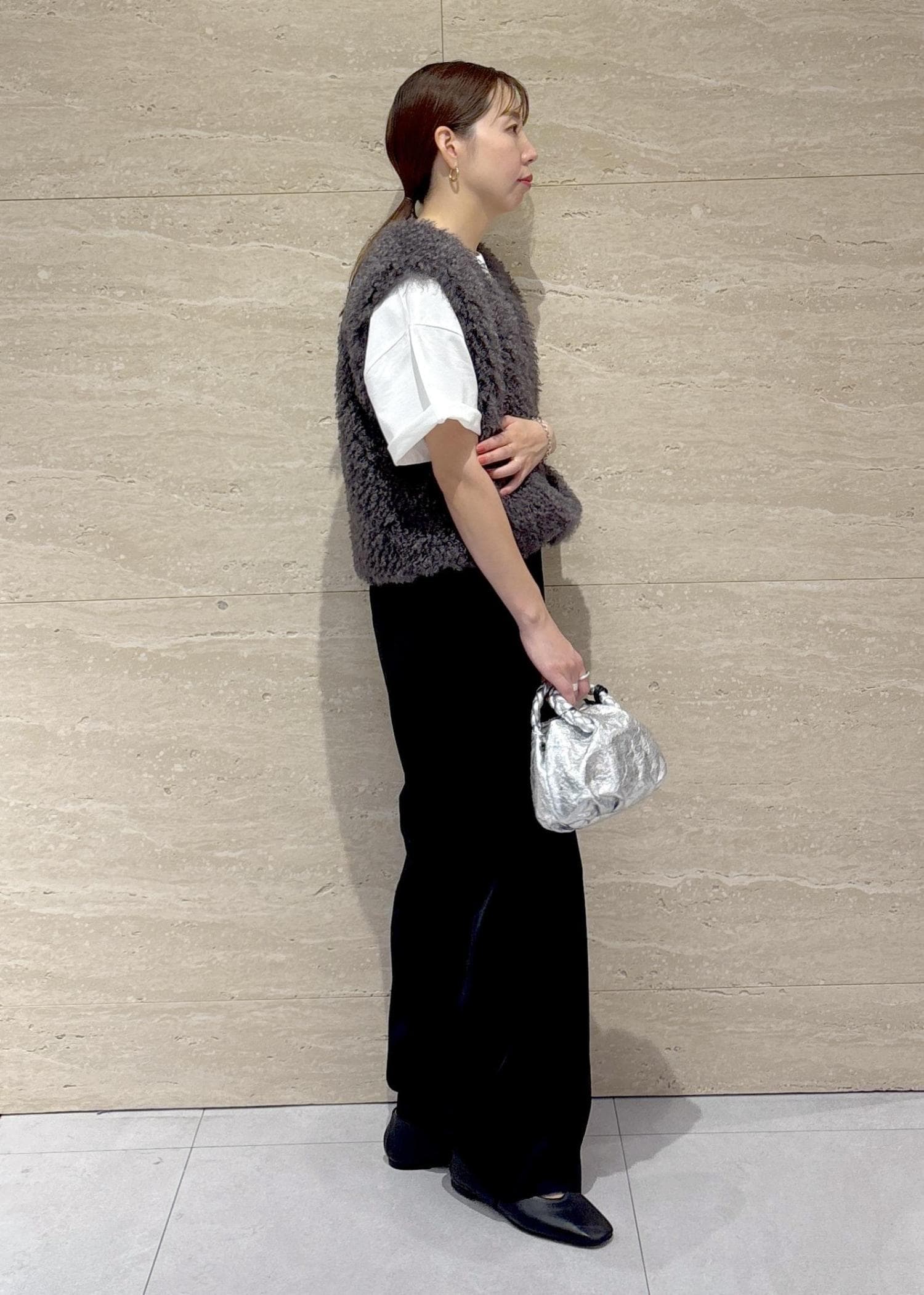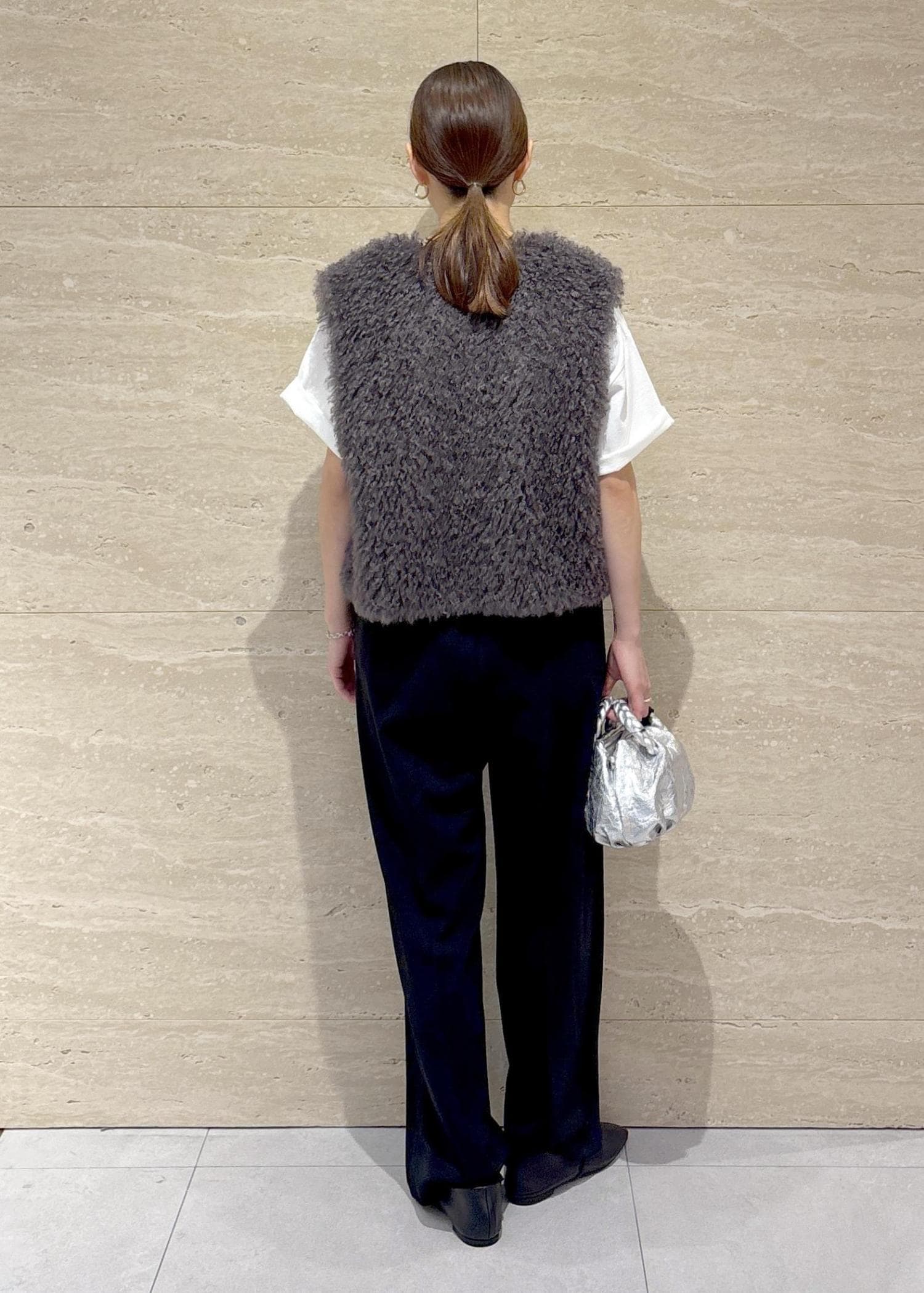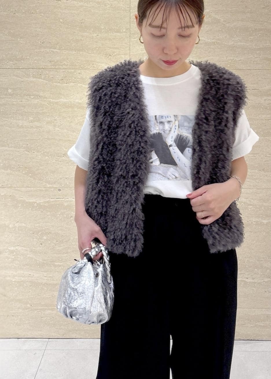 ROPÉフェイクファー ジレ ベストグレー / F¥38,500レビュー短めの丈でコンパクトなので、小柄な方にもバランスが取りやすいと思います。