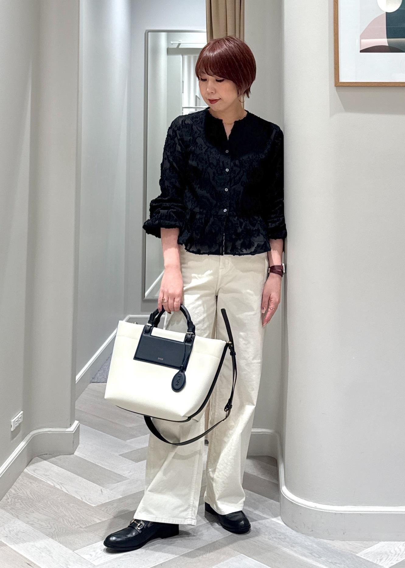 ROPÉペプラムジャガードブラウス/イージーケアブラック / F¥25,300レビュー身幅と袖にはゆとりがありますが、