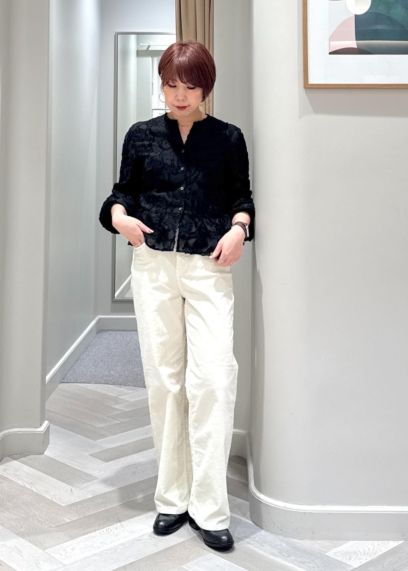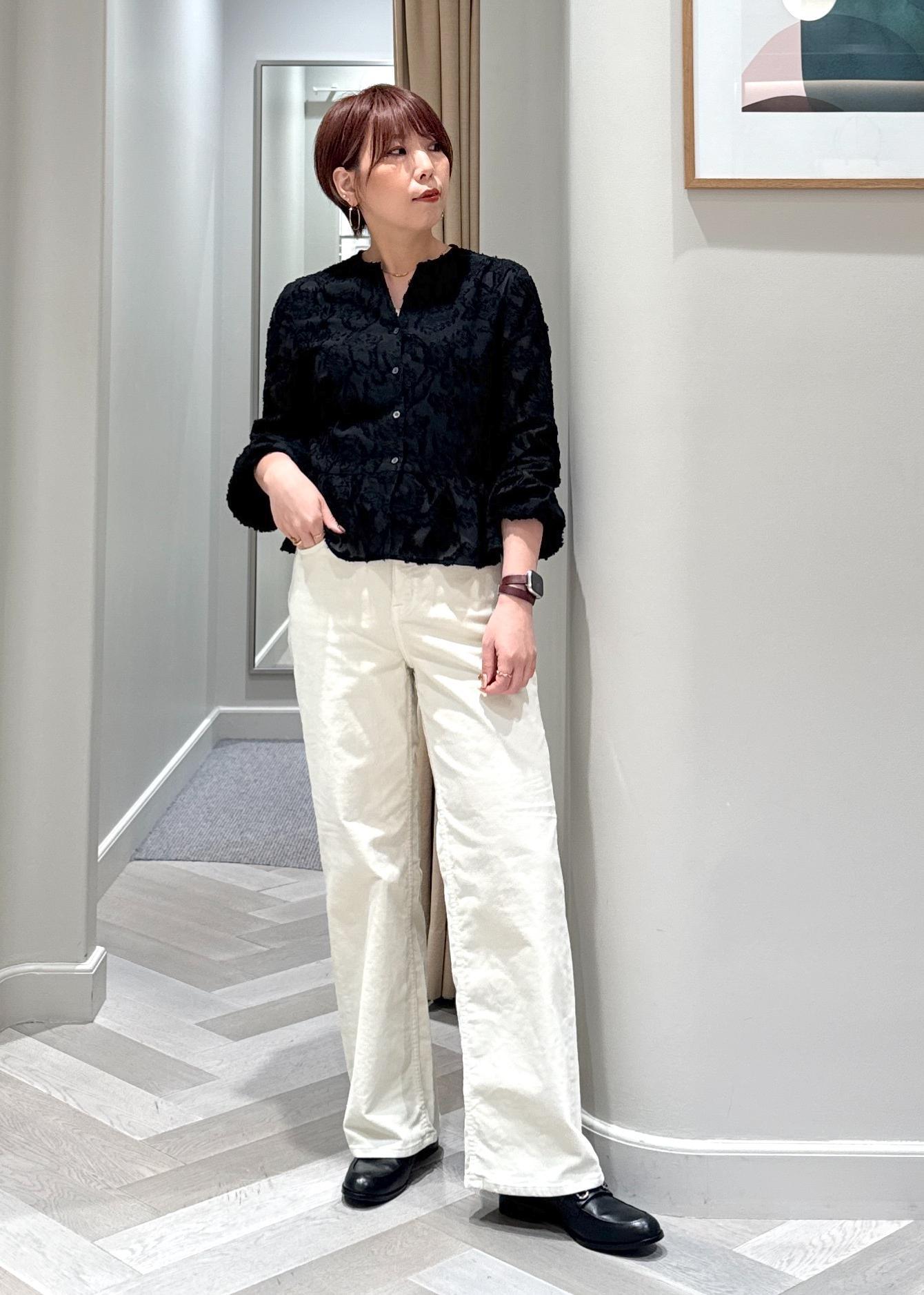 きれいめなブラウスにコーデュロイのパンツを合わせた