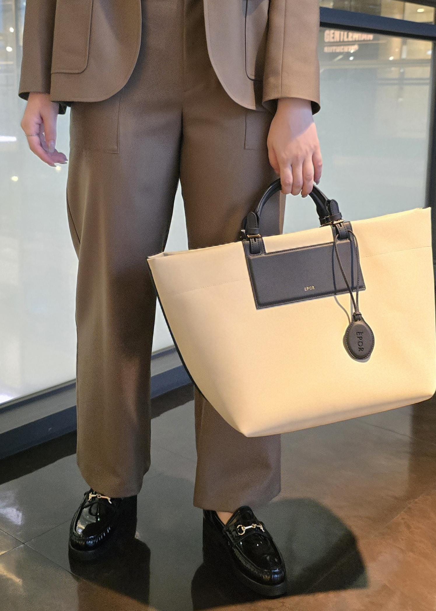 NEW!ROPÉ【E'POR】【A4/PC対応・撥水加工・軽量】BOAT BAG Large【25AW】キナリ / F¥19,800レビューA4が入るサイズ感です。マチもあり細々としたお手荷物も入れやすいです。ナイロンで軽量かつ撥水仕様なので、天候の不安定な時期にも気軽に持ちやすく◉ ショルダーベルトもついていて2wayで使えます。