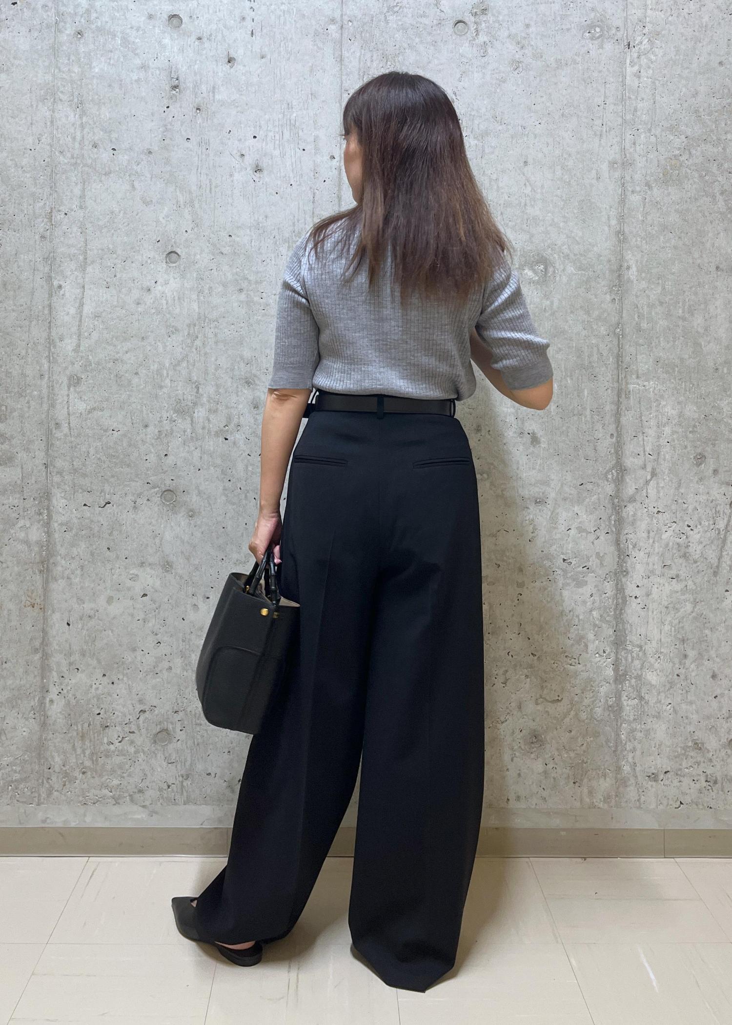 ワイドシルエットでゆとりがありますが、落ち感がある為小柄な方もキレイに履けるシルエットです。