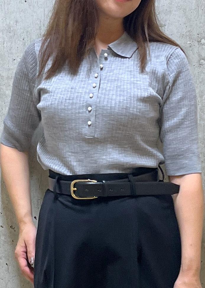 ROPÉパール釦ポロニット/イージーケアグレー / F¥19,800レビューリブニットですが程よいフィット感でピッタリしすぎず、身体のラインを拾いすぎないシルエットです。