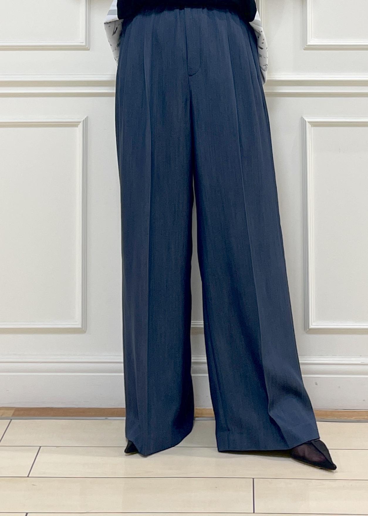 ROPÉ【洗える・カセット服・新色追加】バックサテンイージーワイドパンツ/お仕事・通勤・セットアップ対応ネイビー系 / 36¥27,500レビューサイズ感は通常サイズで丁度良かったです。