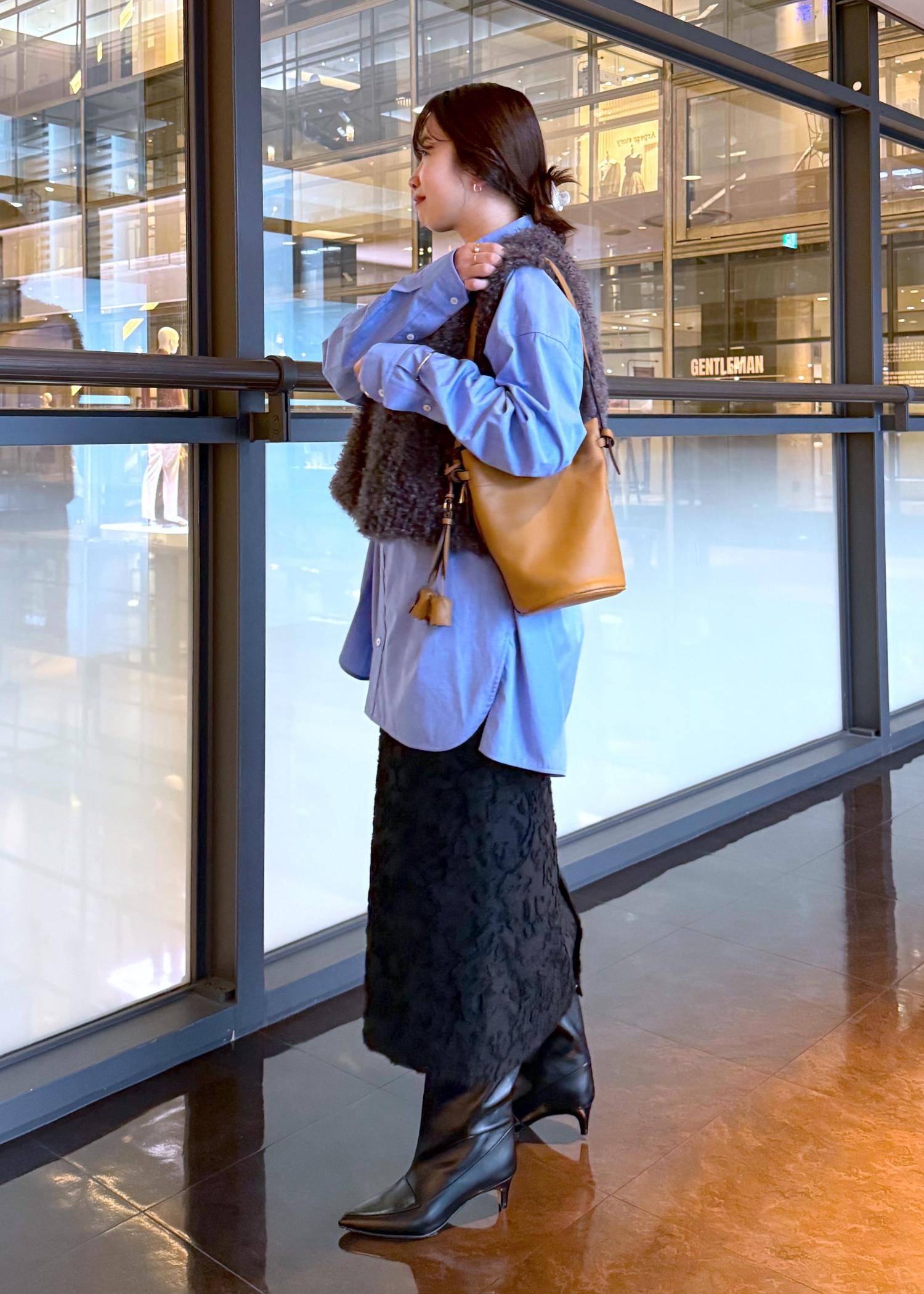 ワイドパンツやロングスカートなどボリュームのあるボトムとの相性も良いです。