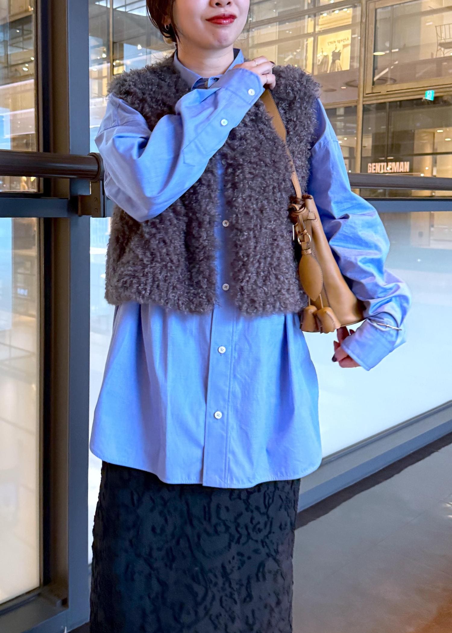 腰にかかるくらいのやや短めの着丈なので、シャツやTシャツとのレイヤードもバランスがすっきり見えます◎
