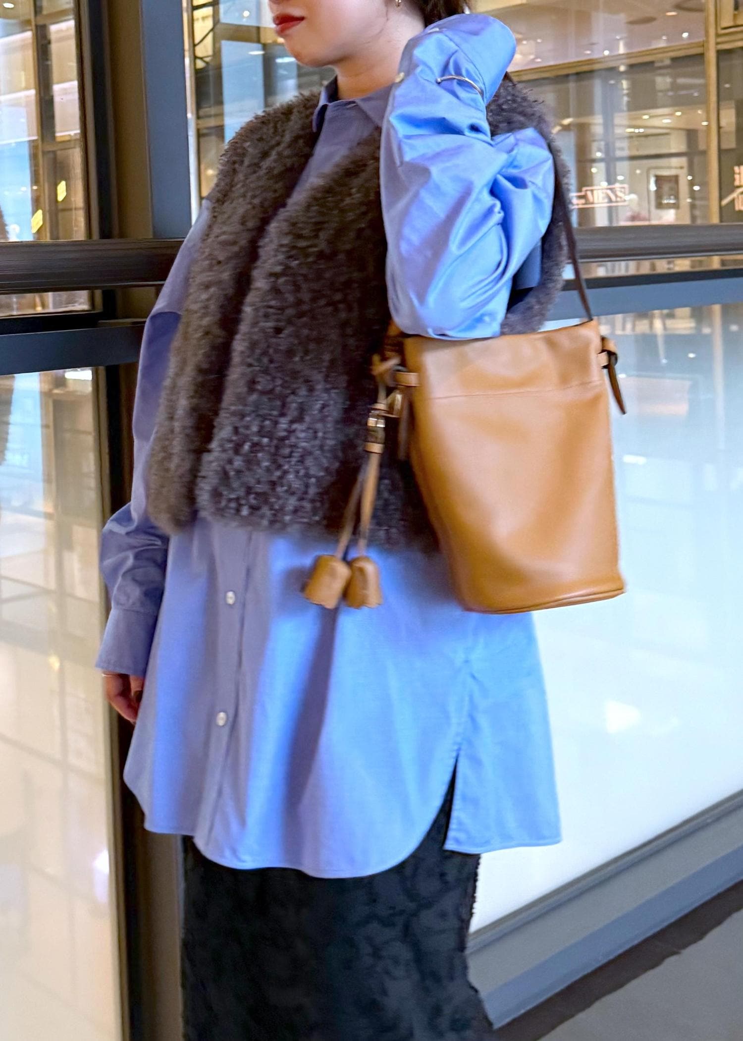 ポーチやお財布・携帯・充電器など、マチがしっかりあるので必要最低限のものは入れていただけます。
