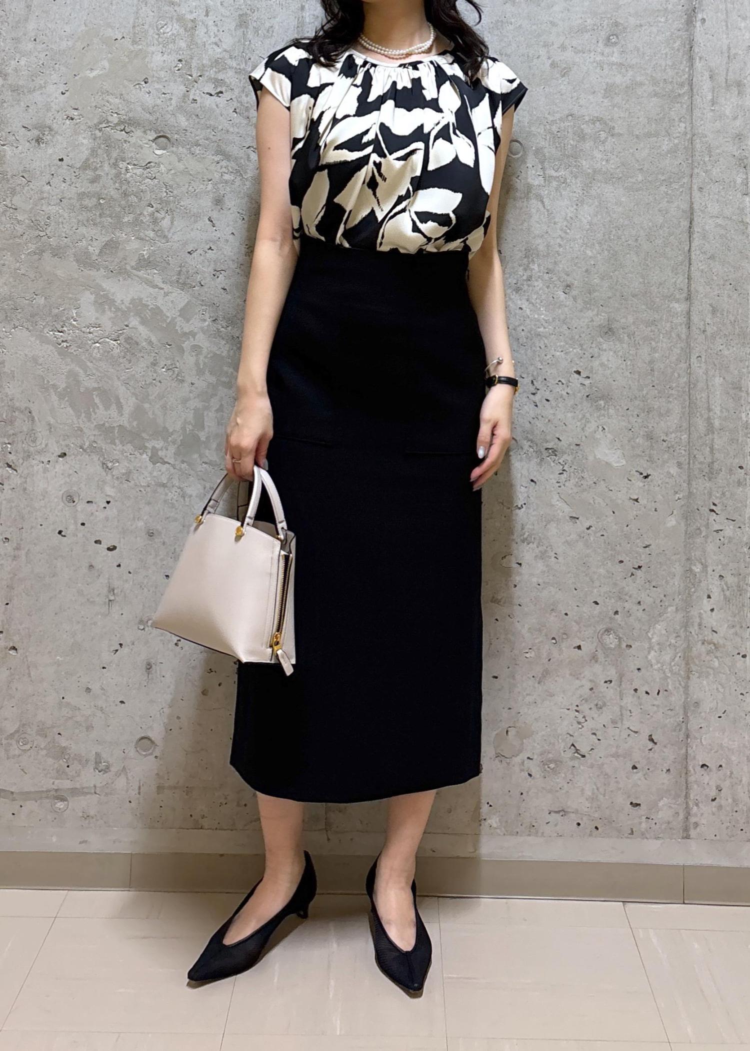 ROPÉリネンライク ポケット付きタイトスカート/イージーケアブラック / 38¥20,900レビュー身長164㎝、ボトムが普段38サイズを着用。