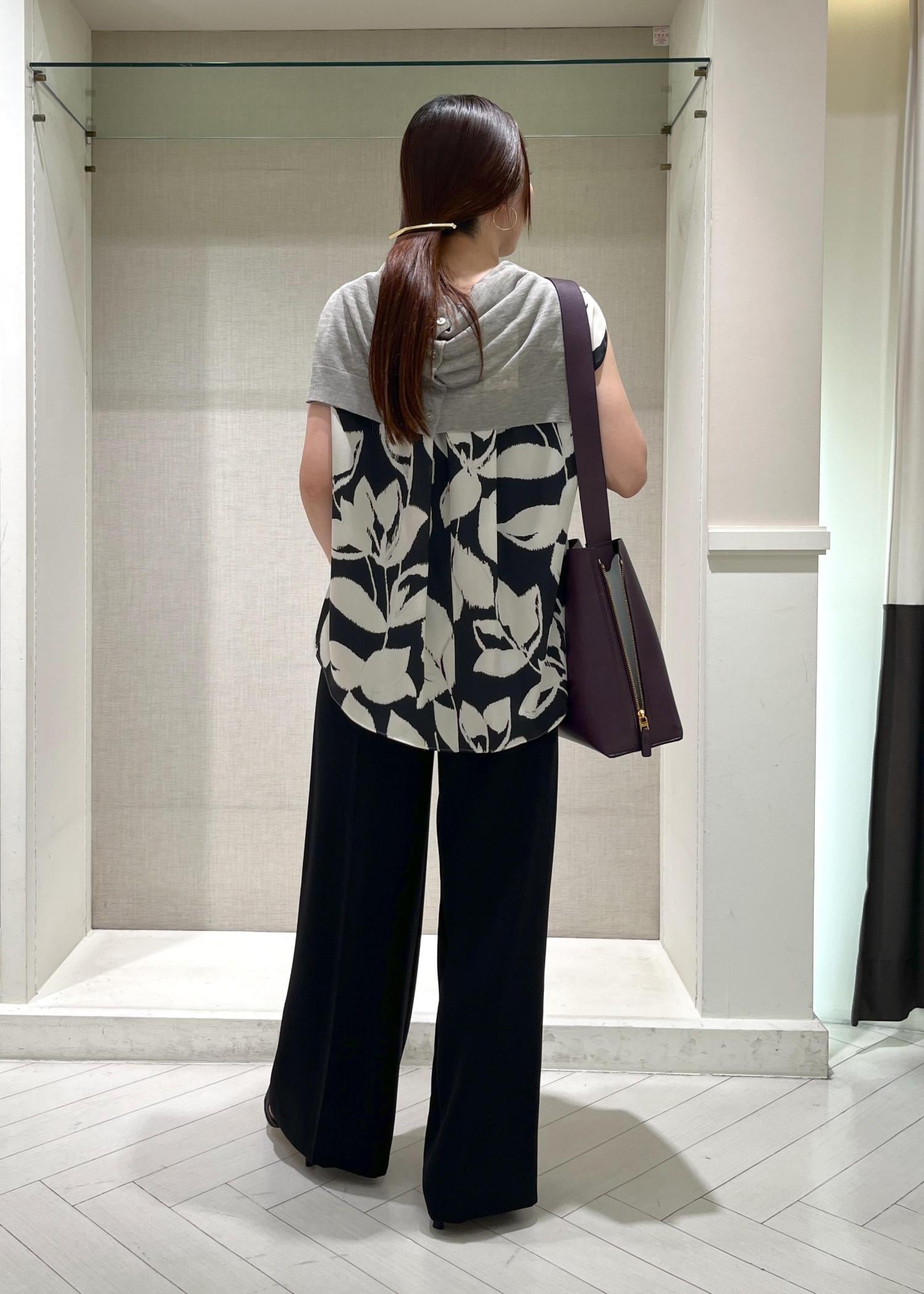 身幅に程よいゆとりがあるので、ボディラインを拾わずにお召し頂けます。ヒップラインに少しかかるくらいの着丈でした。