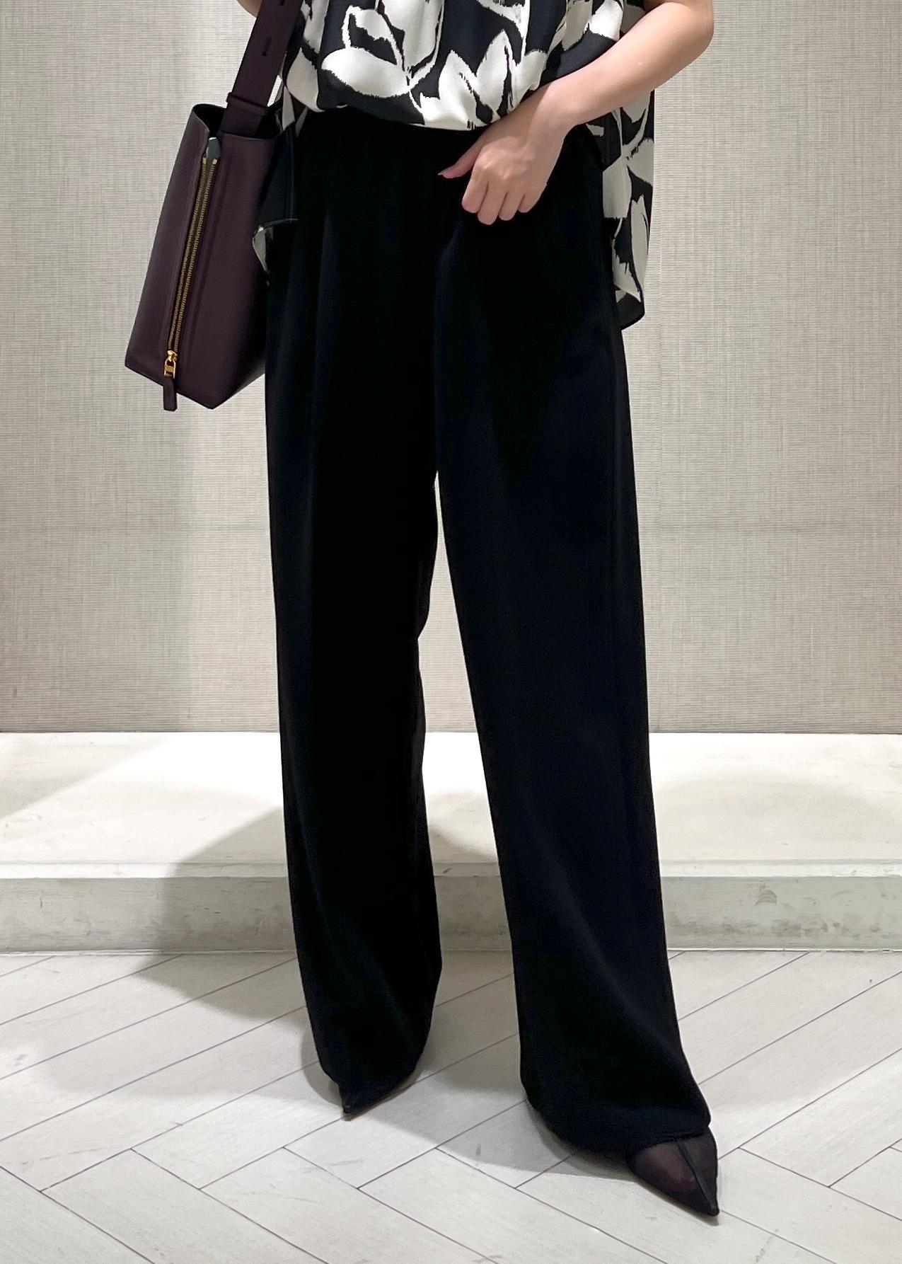 ROPÉ【洗える・カセット服・新色追加】バックサテンイージーワイドパンツ/お仕事・通勤・セットアップ対応ブラック / 36¥27,500レビュー【サイズ感】