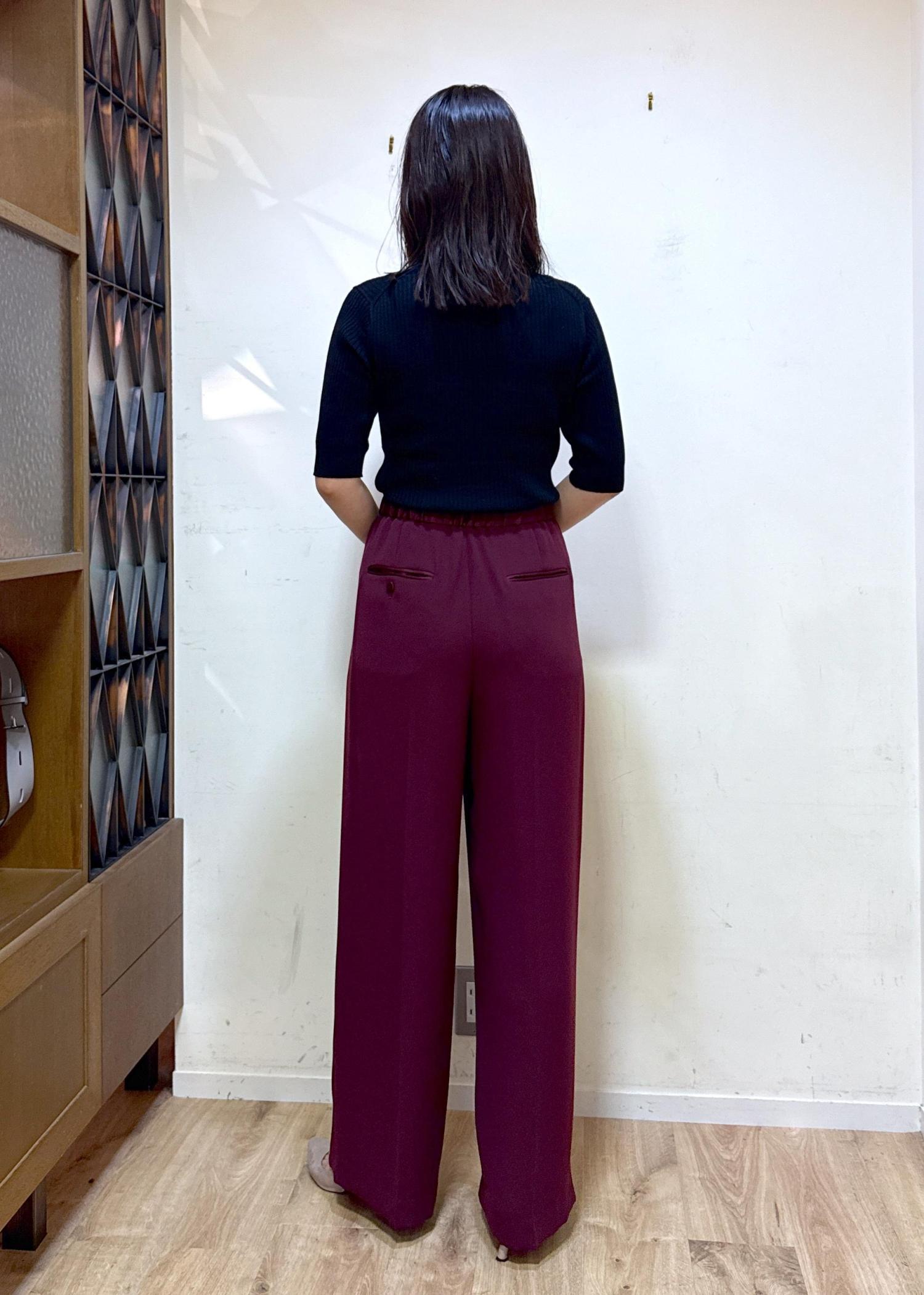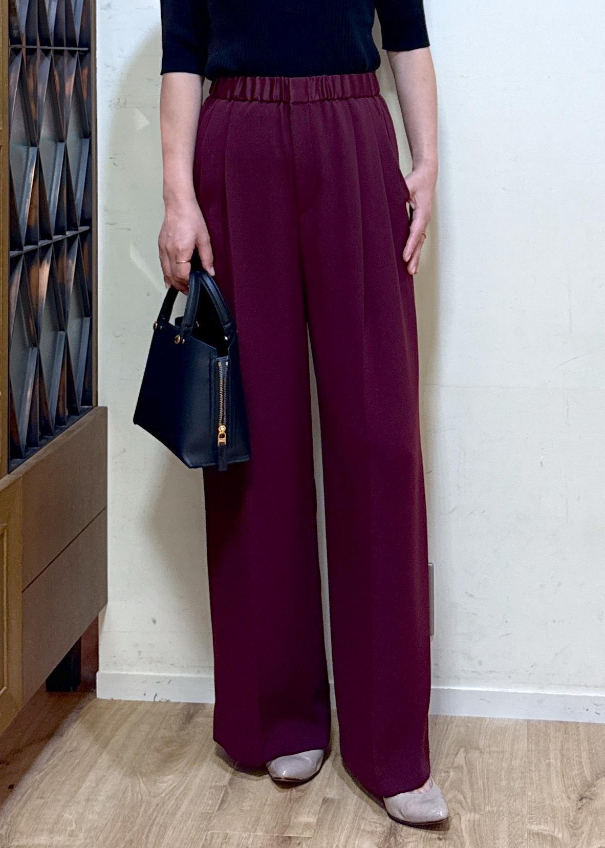 ROPÉ【洗える・カセット服】ライトトリアセイージーワイドパンツ/お仕事・通勤・セットアップ対応ワイン / 36¥25,300レビュー163センチ 36サイズ着用