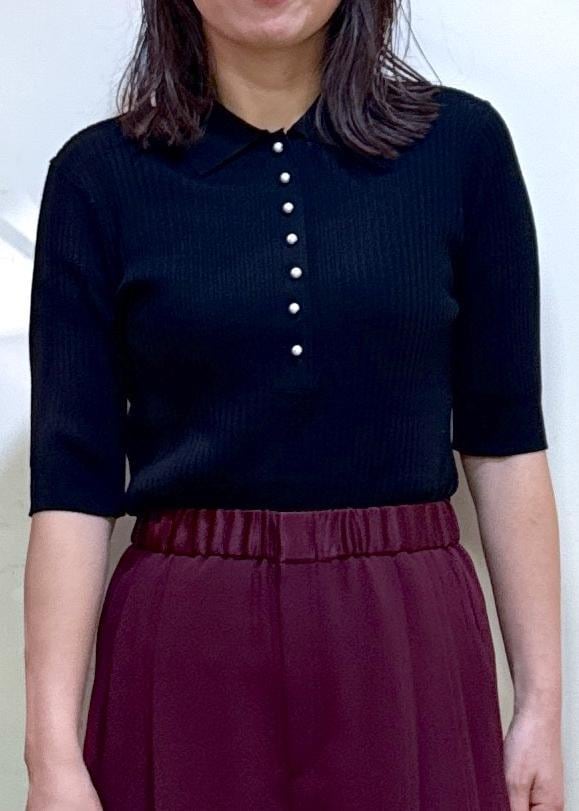 ROPÉパール釦ポロニット/イージーケアブラック / F¥19,800レビュー163センチ Fサイズ着用