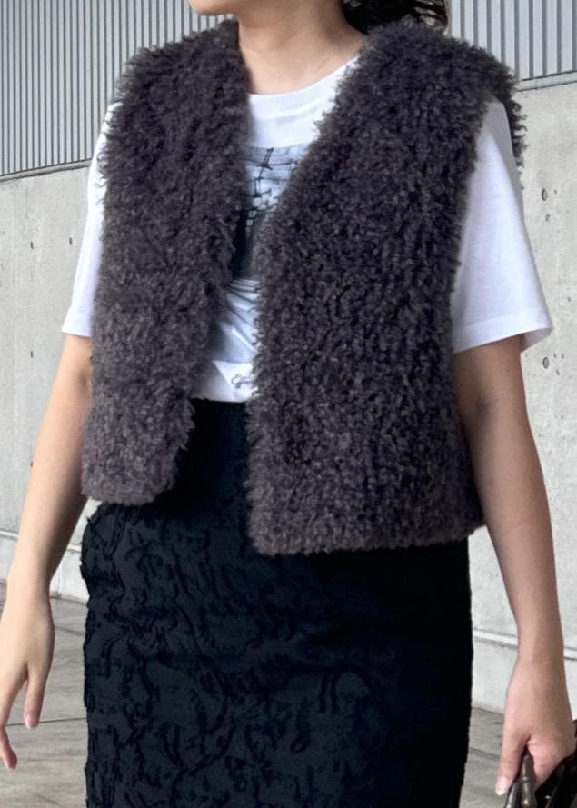 ROPÉフェイクファー ジレ ベストグレー / F¥38,500レビュー身長161㎝で普段38サイズを着用。