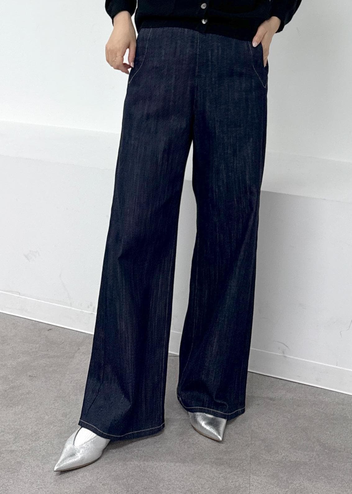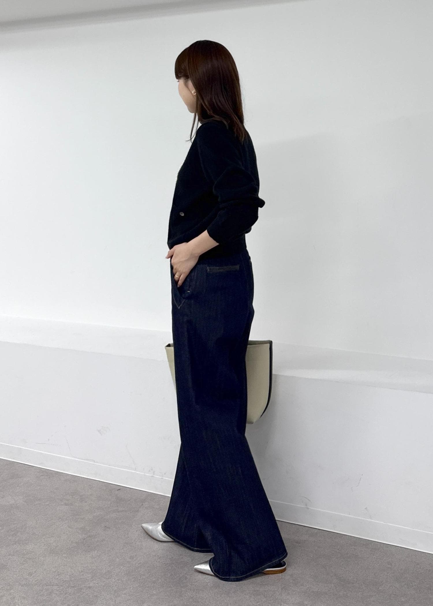 ROPÉストレッチデニム セーラーパンツ/イージーケアネイビー系 / 38¥30,800レビュー身長160cm、サンプル38サイズ着用。