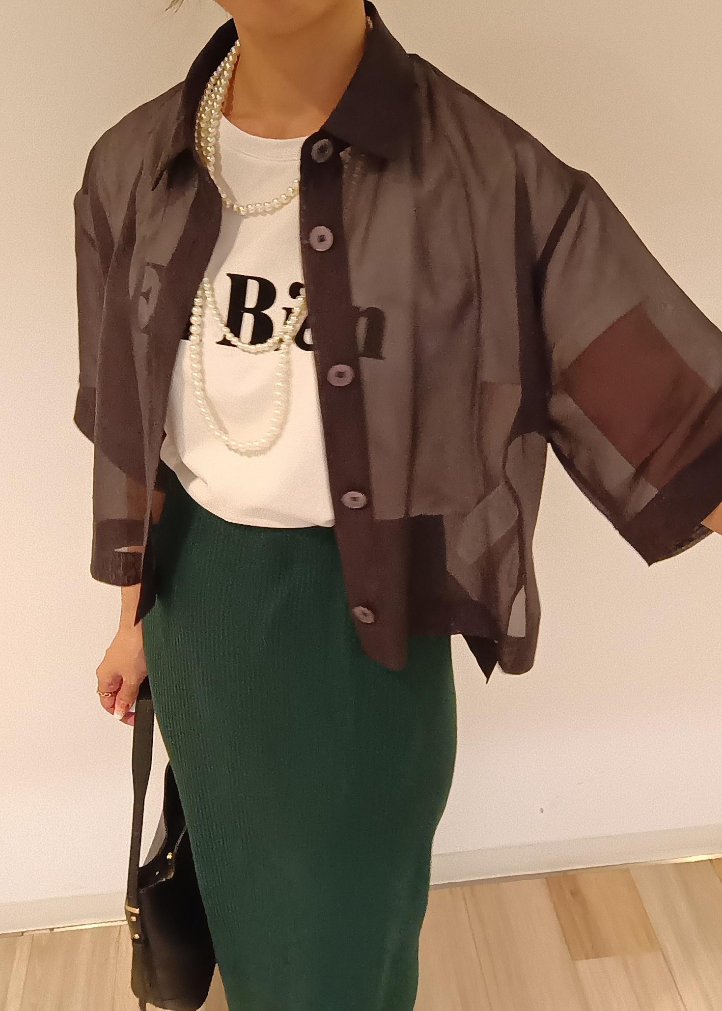 ROPÉ PICNIC【接触冷感】ハーフスリーブシアーシャツチャコール / 38¥5,489レビューしっかりとした発色がありながらかなり透け感が強く、涼し気な印象になります。ややハリのある素材感で、肌触りはツルツルとしているので、暑い日でもまとわりつかず爽やかに着用できます。シルエットはゆったりとしていて体型カバーも叶います!