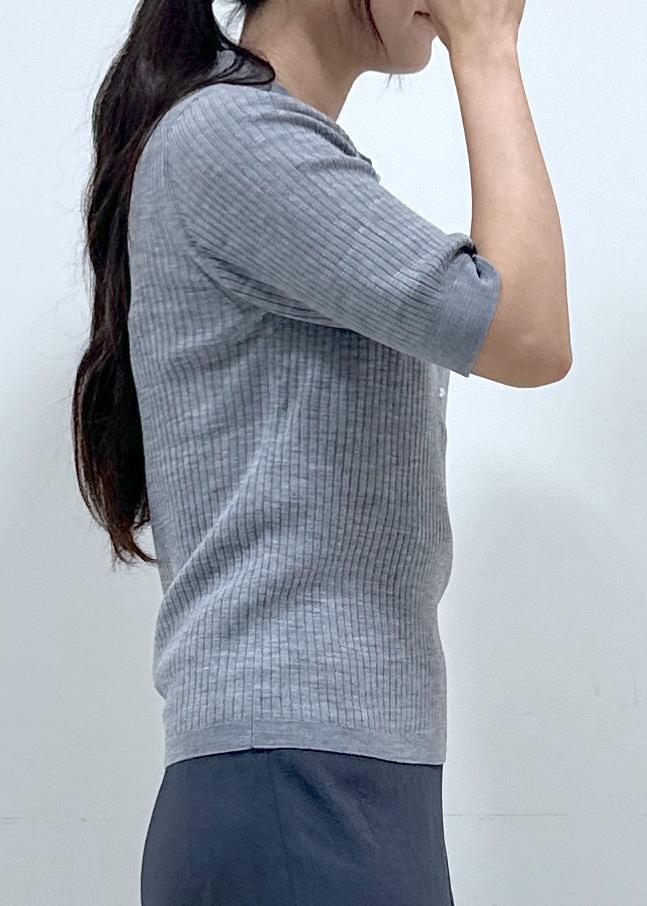 サラとした柔らかい肌触りと緩めのリブがラインをひろいすぎず、楽にスッキリとした美シルエットです。