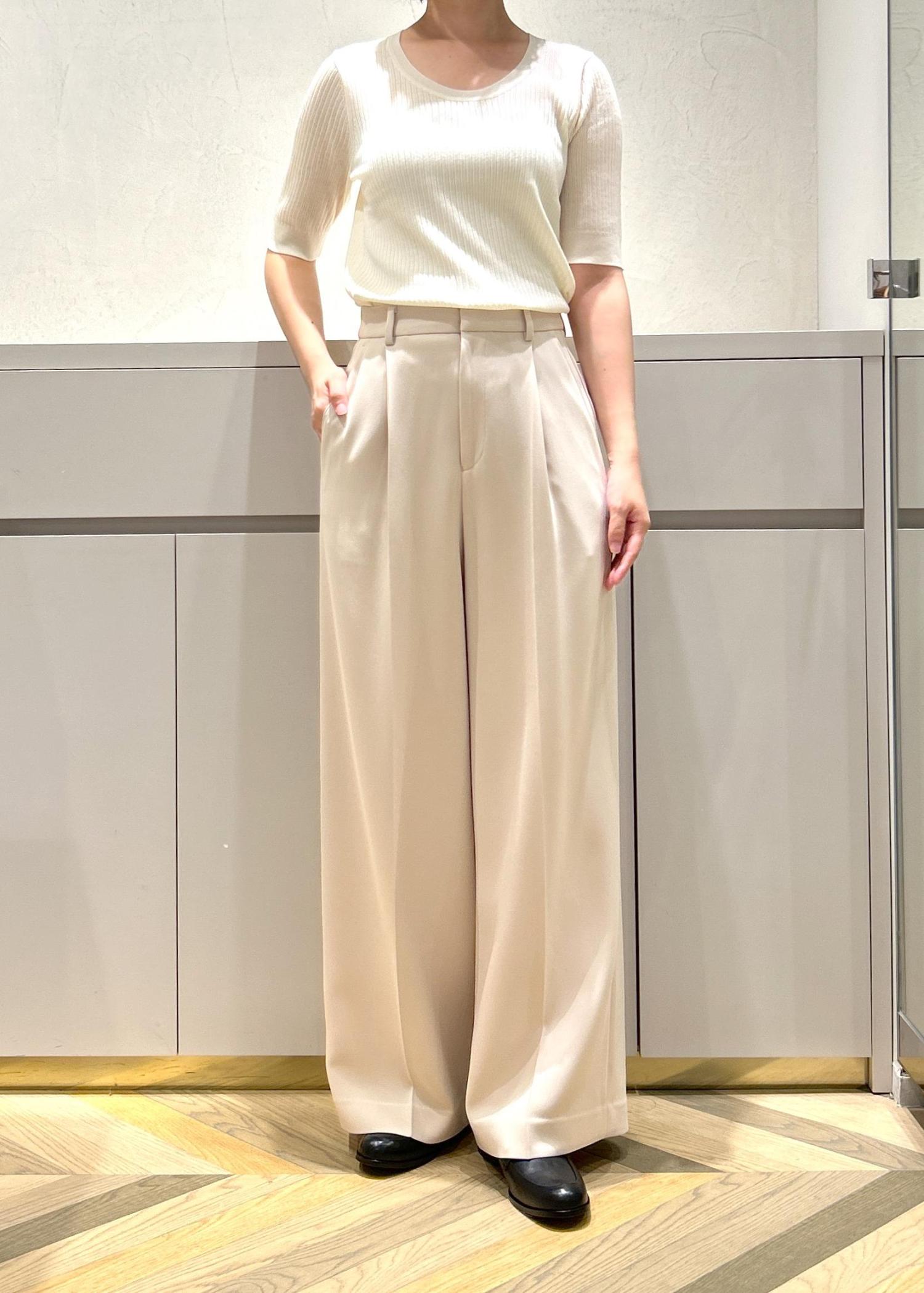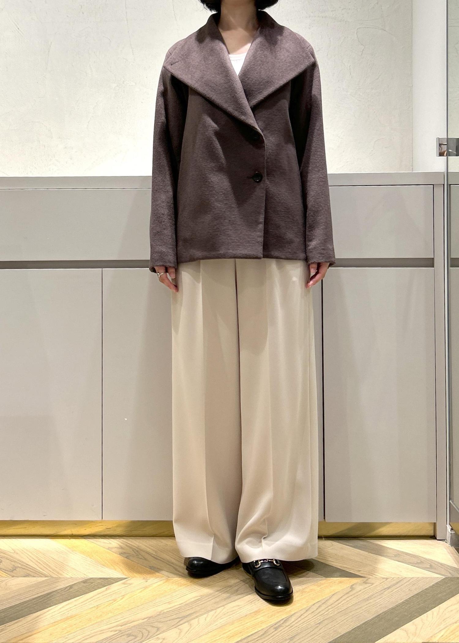 落ち感があるので、ワイドですが広がりすぎずスッキリと着ていただけます。 -