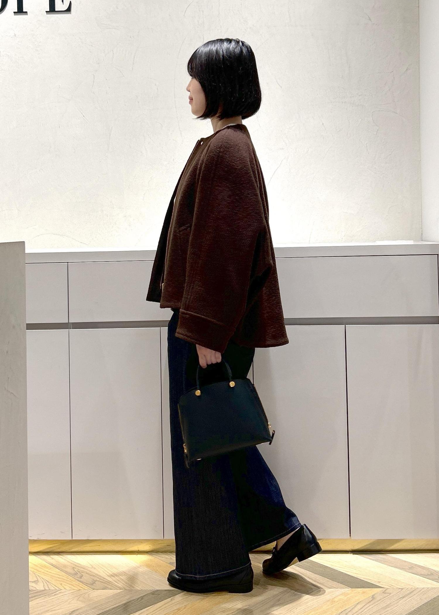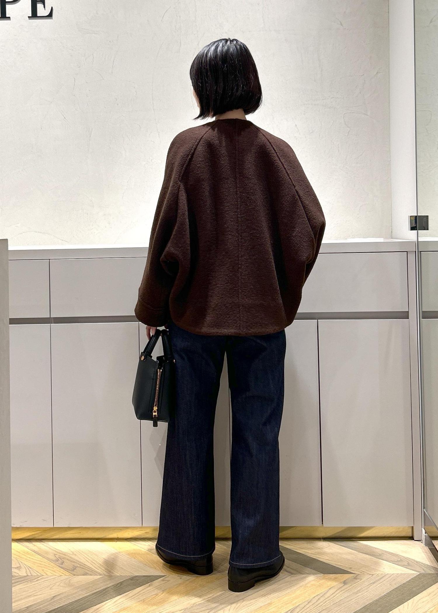 ROPÉ圧縮ウールコクーンショート丈コート/Bellandi(ベランディ)ダークブラウン / 36¥58,300レビュー後ろはヒップが隠れるくらいの丈感で前後差があります。Aラインのシルエットが動きのあるデザインです。