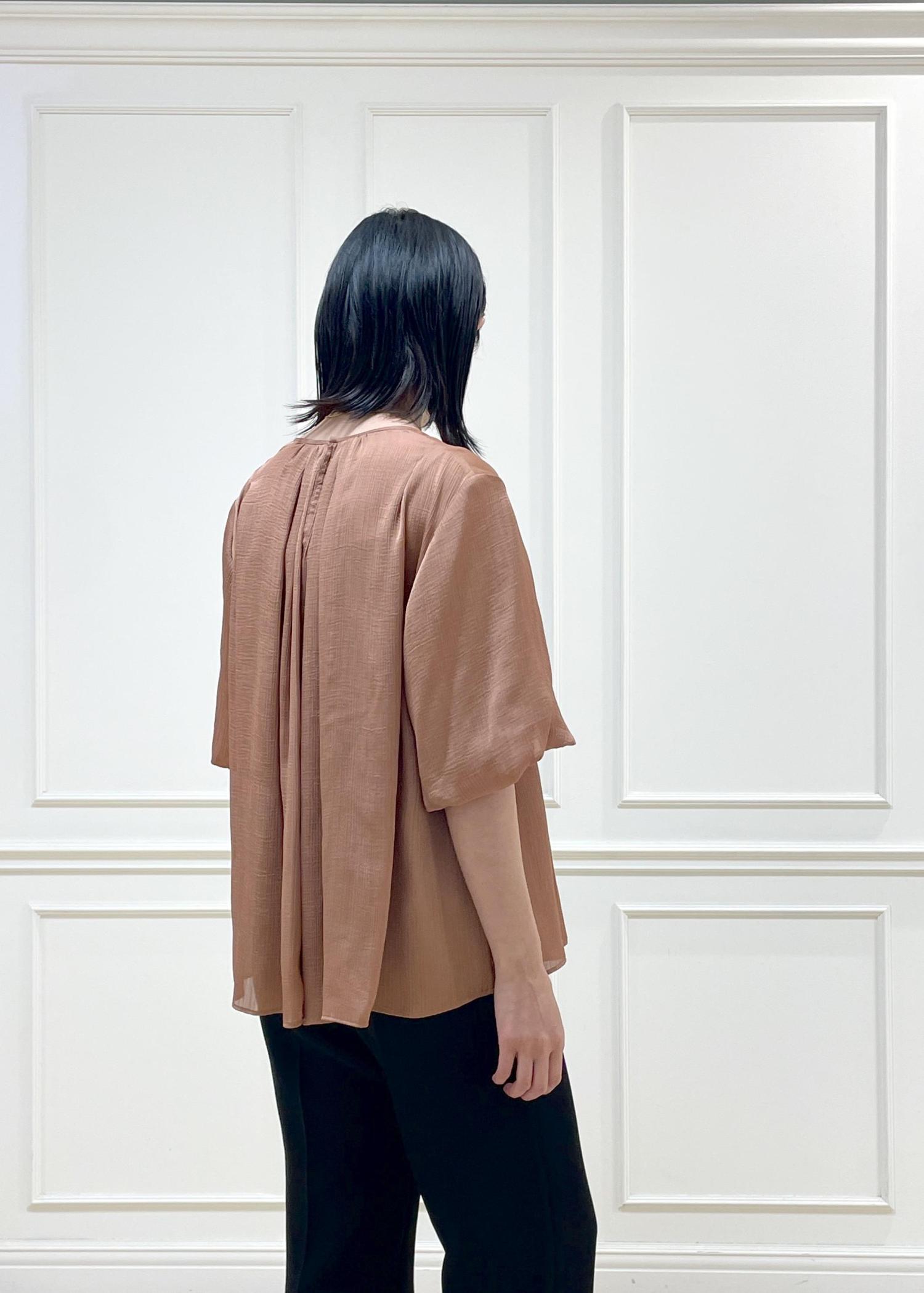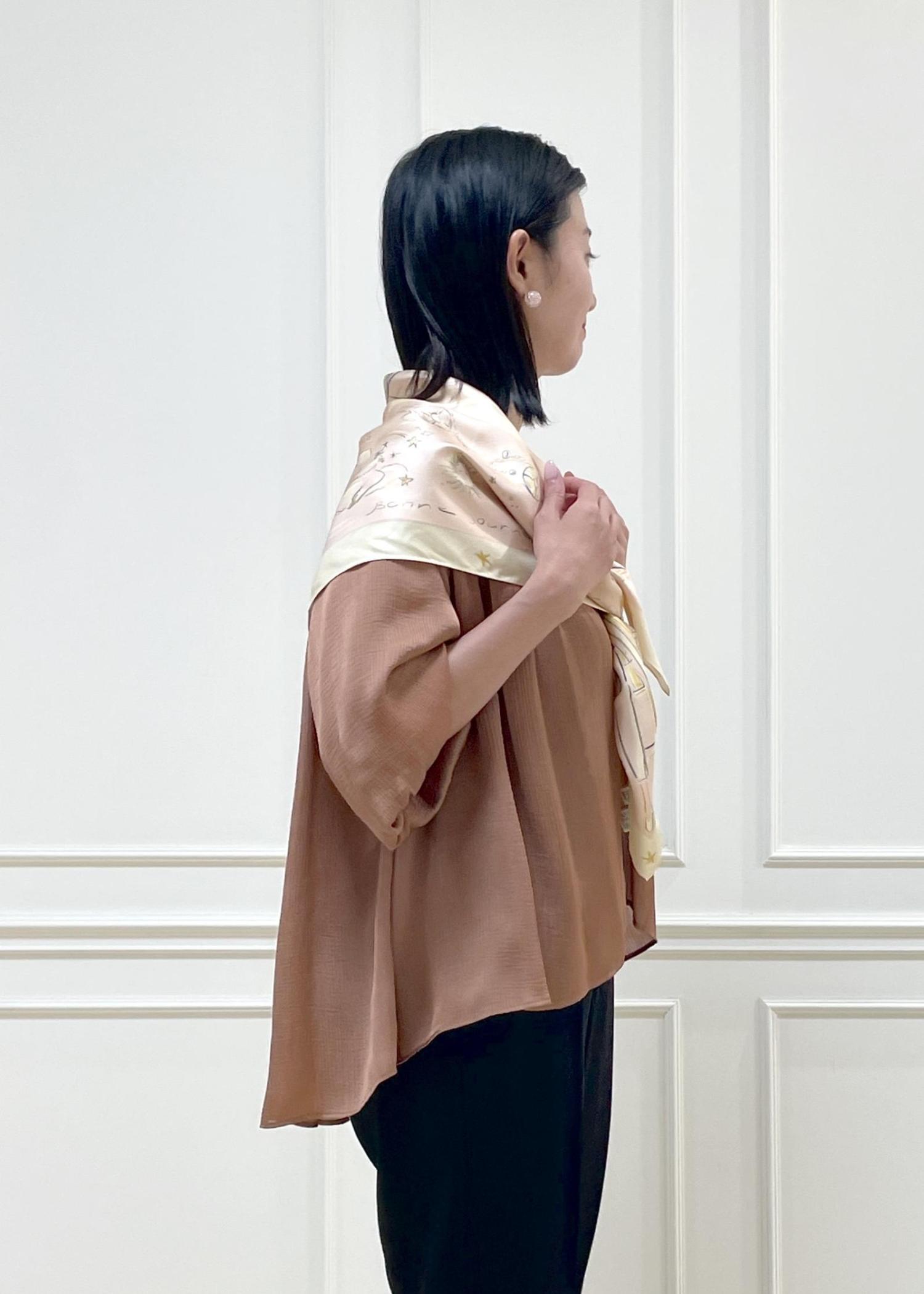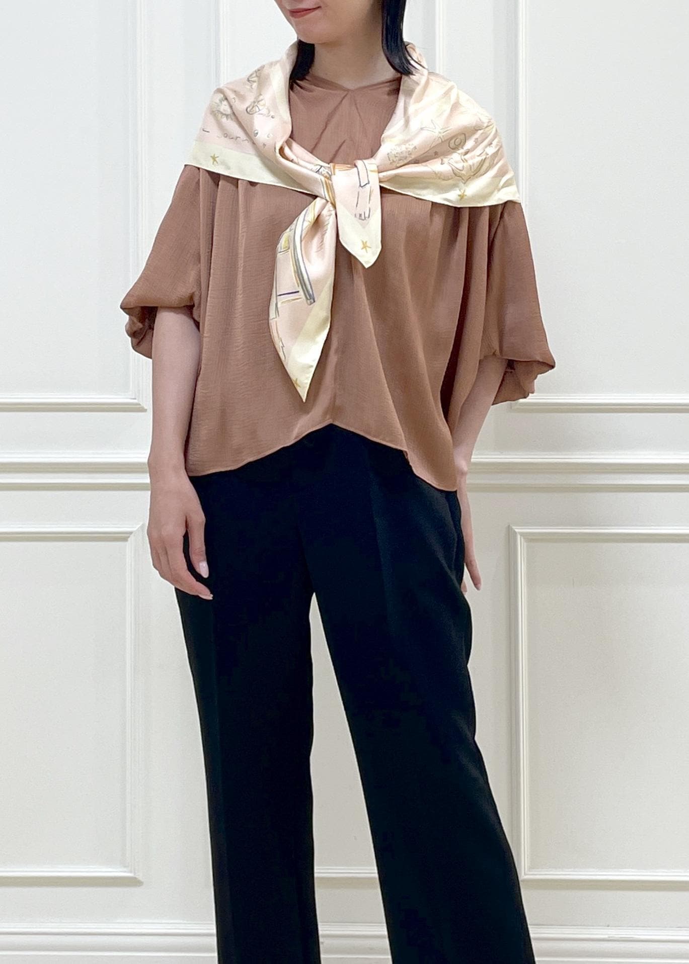 体のラインを拾いにくい、ゆったりとしたシルエットが魅力のブラウス。