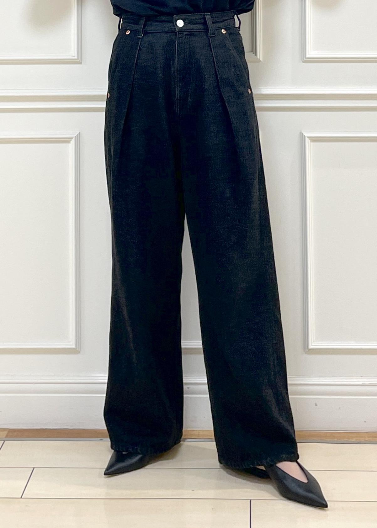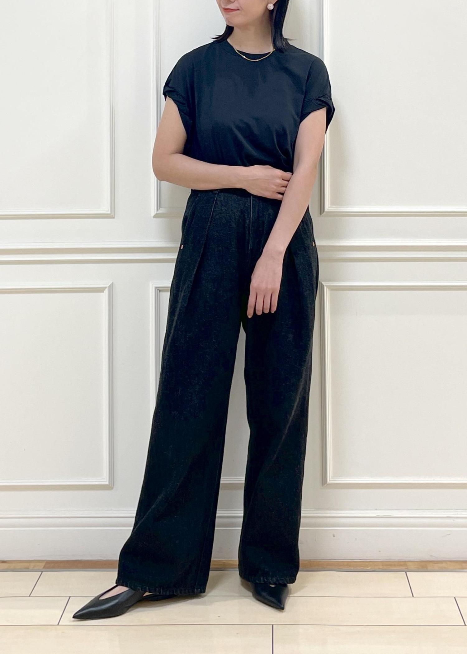 ROPÉ【洗える】ワンタック ワイドデニムパンツブラック / 36¥27,500レビューウエストは、普段通りのサイズでちょうど良く、157cmの身長ですが、丈もカットなしで着用することができました。