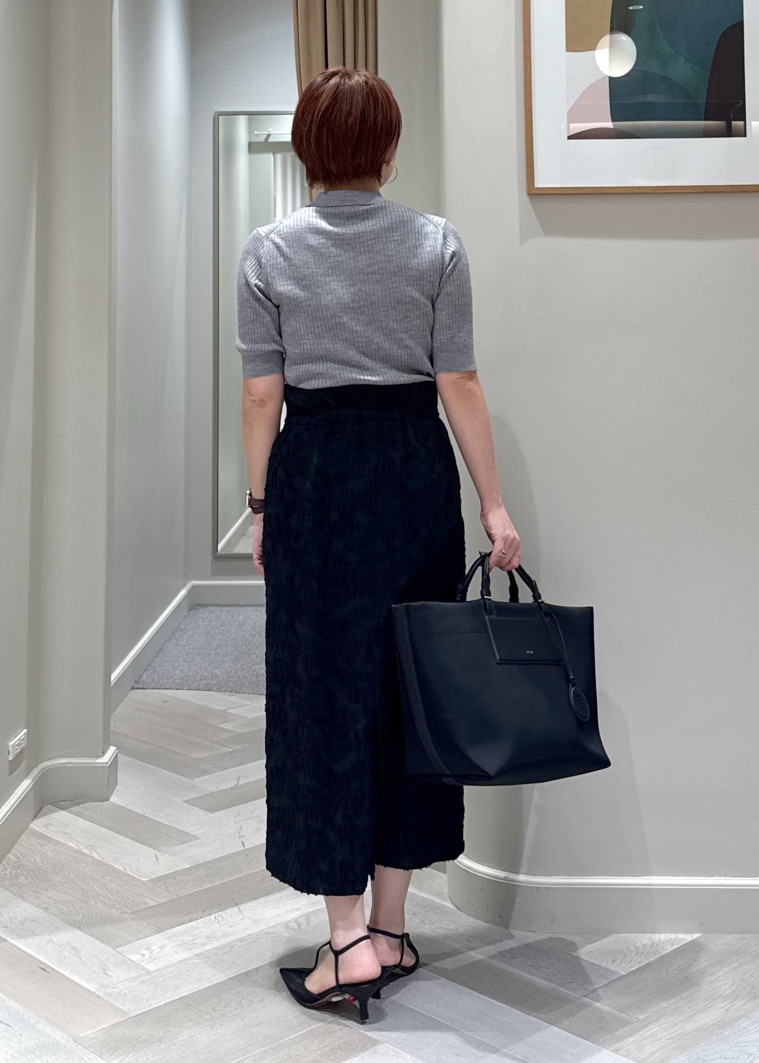 スカートやパンツ、どちらにも合わせやすくてお勧めです。