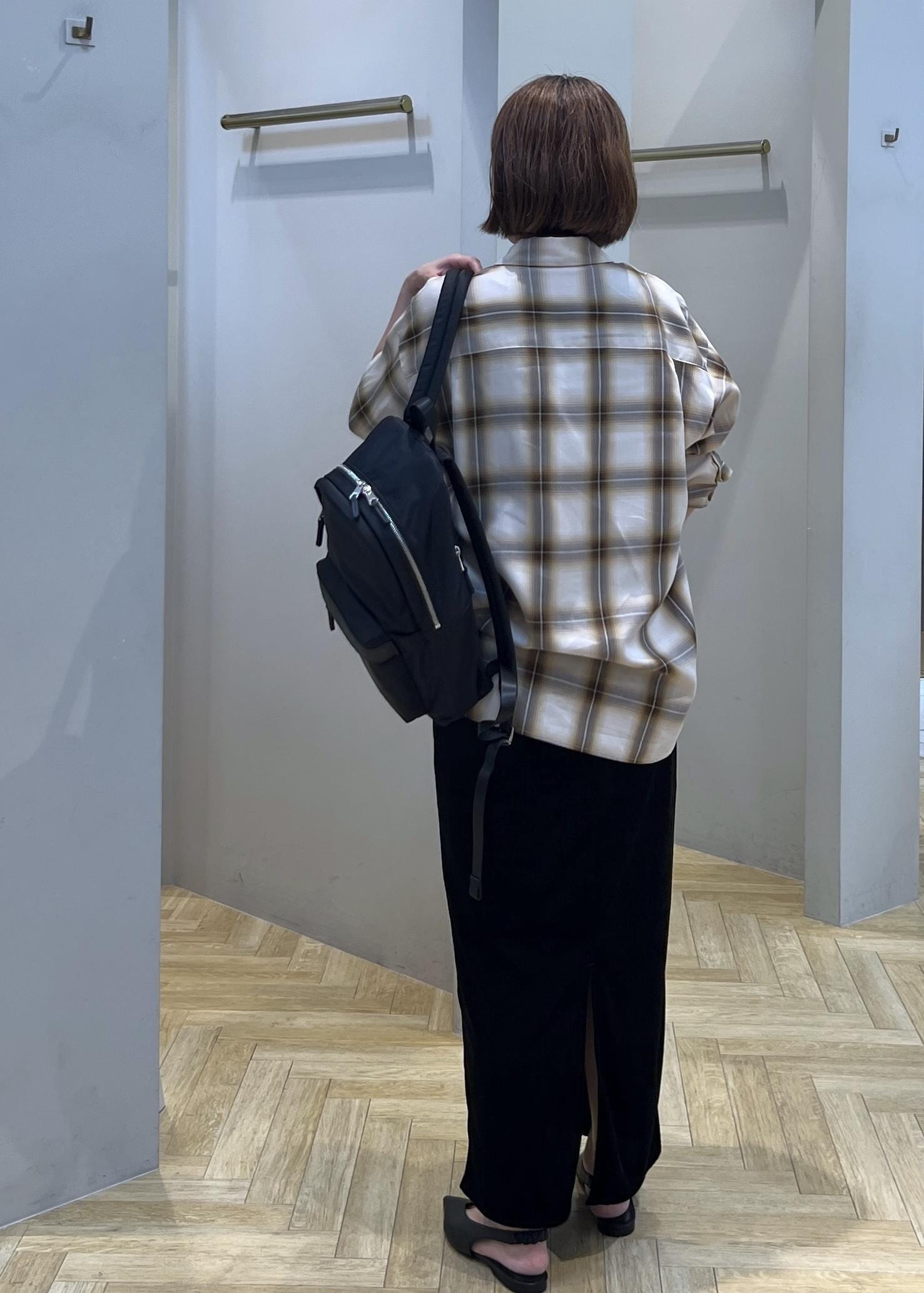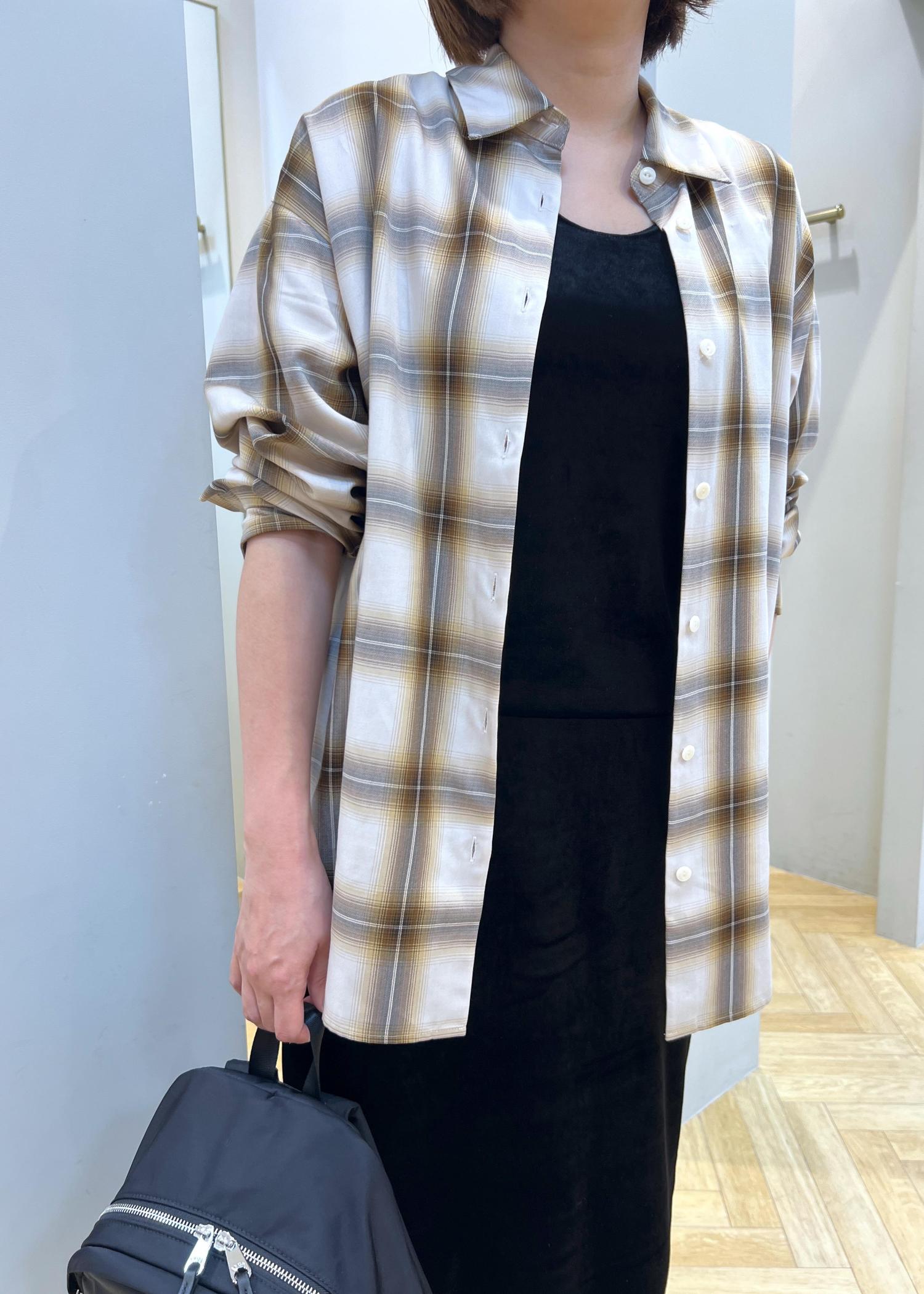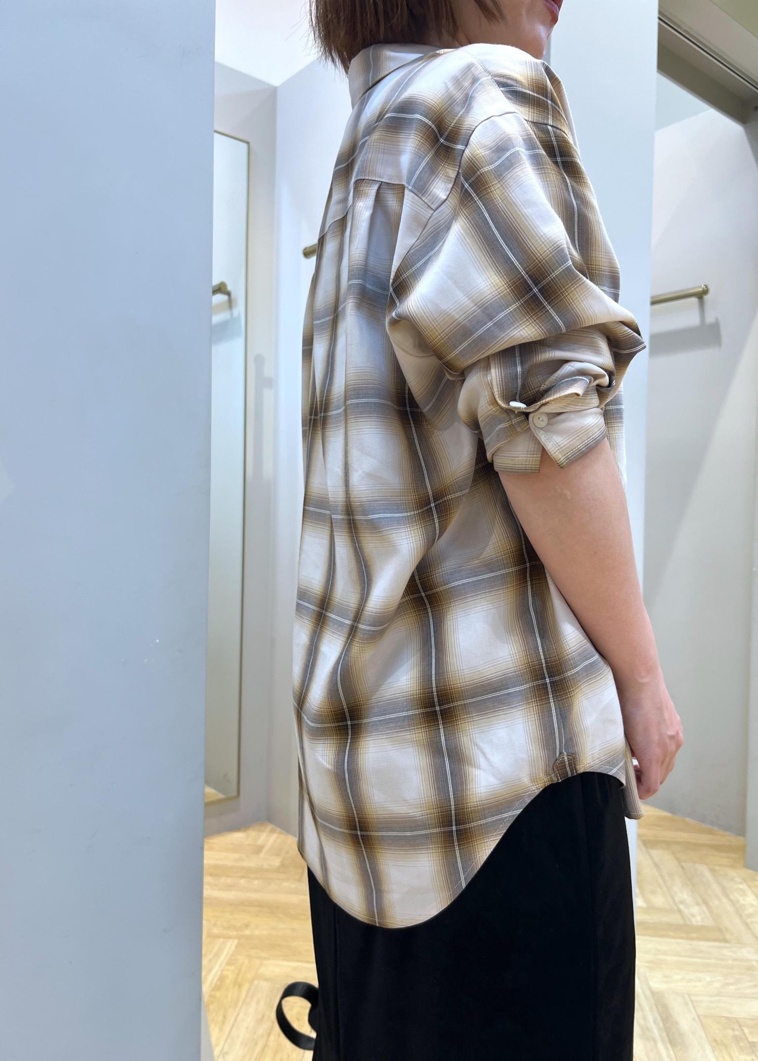 SALON adam et ropéShuttlenotesオンブレチェックネクタイシャツベージュ系 / F¥24,200レビューオーバーサイズでヒップも隠れる