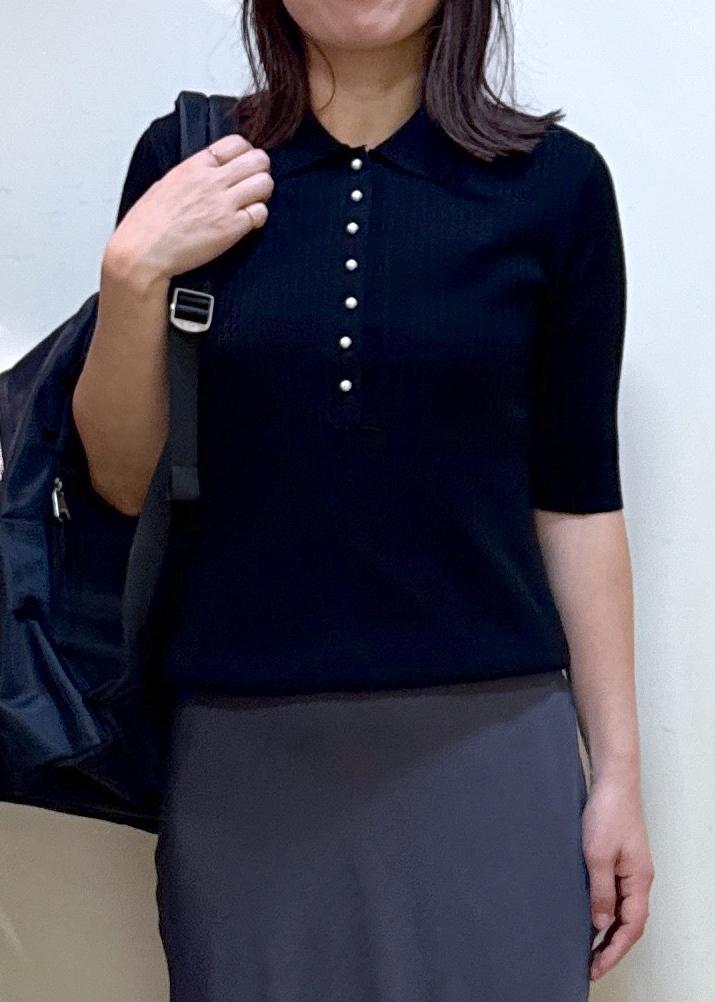 ROPÉパール釦ポロニット/イージーケアブラック / F¥19,800レビュー163センチ Fサイズ着用