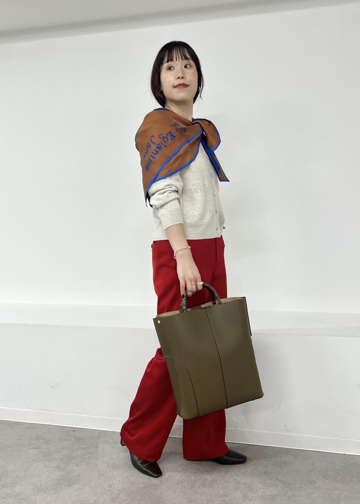 ROPÉ【E'POR】BAMBOO BAG Large【通勤】【A4対応】【25AW】カーキ / F¥19,800レビューA4ファイル、長財布、500mlペットボトル、小さめポーチが入るサイズ感。