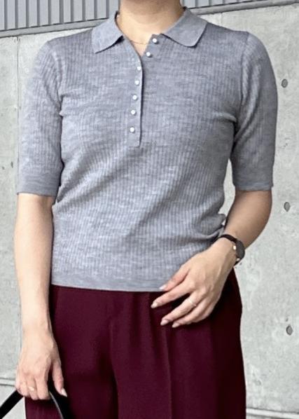 ROPÉパール釦ポロニット/イージーケアグレー / F¥19,800レビュー162センチ 普段トップス38サイズ