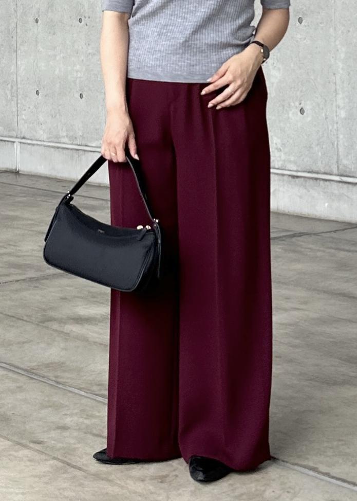 ROPÉ【洗える・カセット服】ライトトリアセイージーワイドパンツ/お仕事・通勤・セットアップ対応ワイン / 38¥25,300レビュー162センチ 普段ボトム38、40サイズ