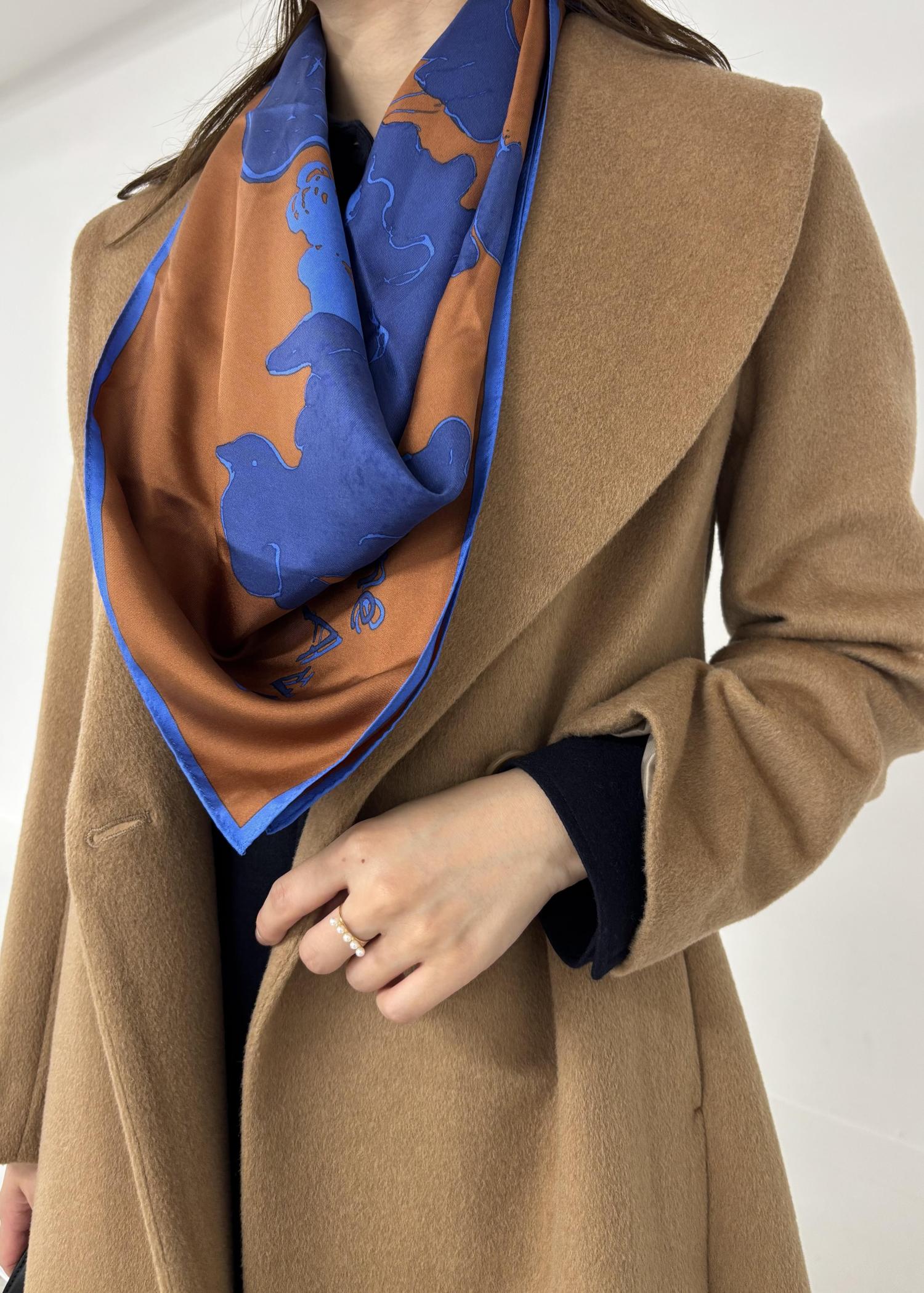 ROPÉロートレックグラフィカル シルクスカーフ/Lサイズブルー / F¥19,800レビューフランスの画家、ロートレックの名品リトグラフをコラージュしたスカーフ。シルク100%の上品な艶感と柔らかさが特徴です。首元や頭、バックなど定番の使い方の他、スカートやパンツ、トップスの上から巻いたりとアレンジの幅も広く楽しめるサイズです。