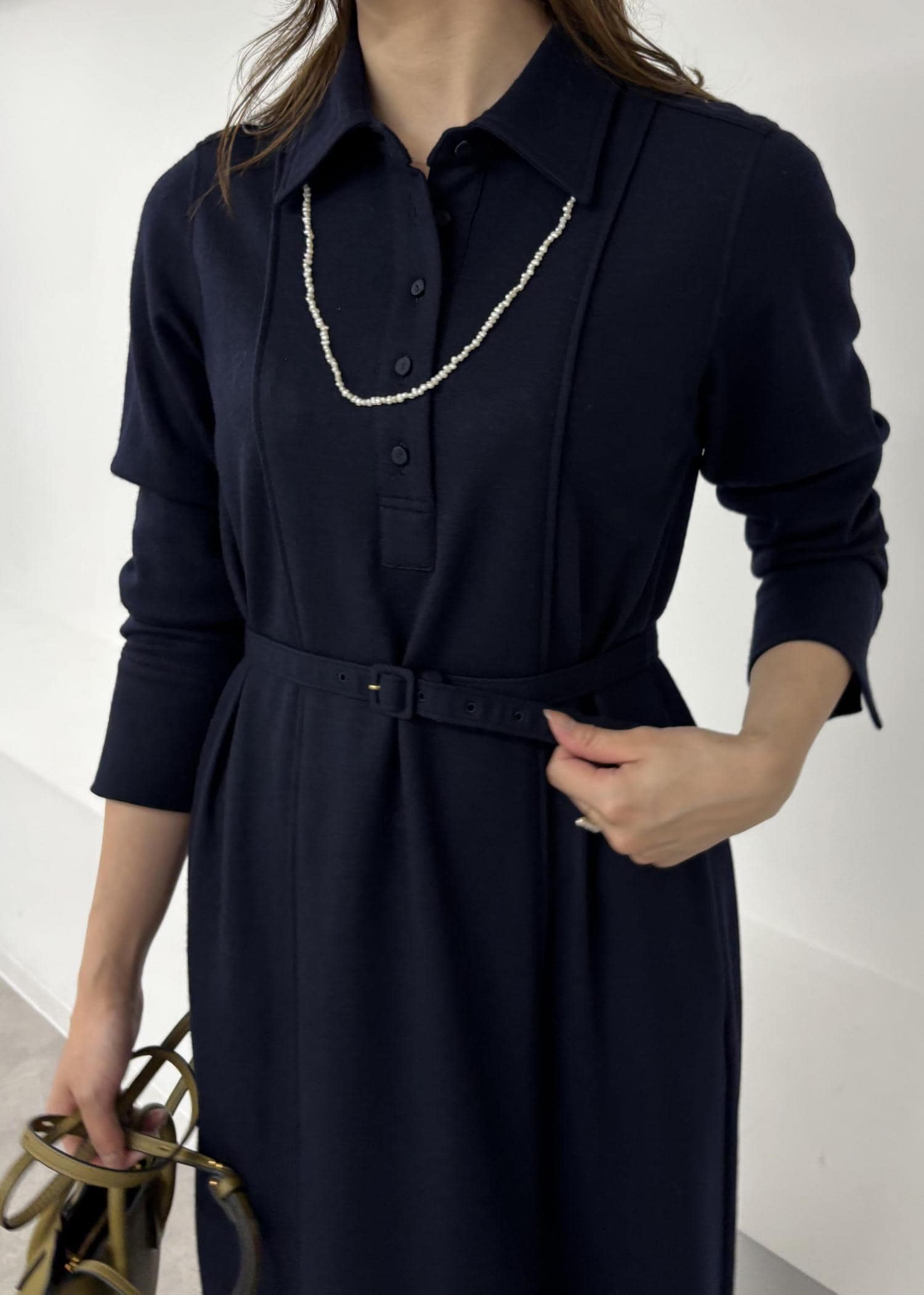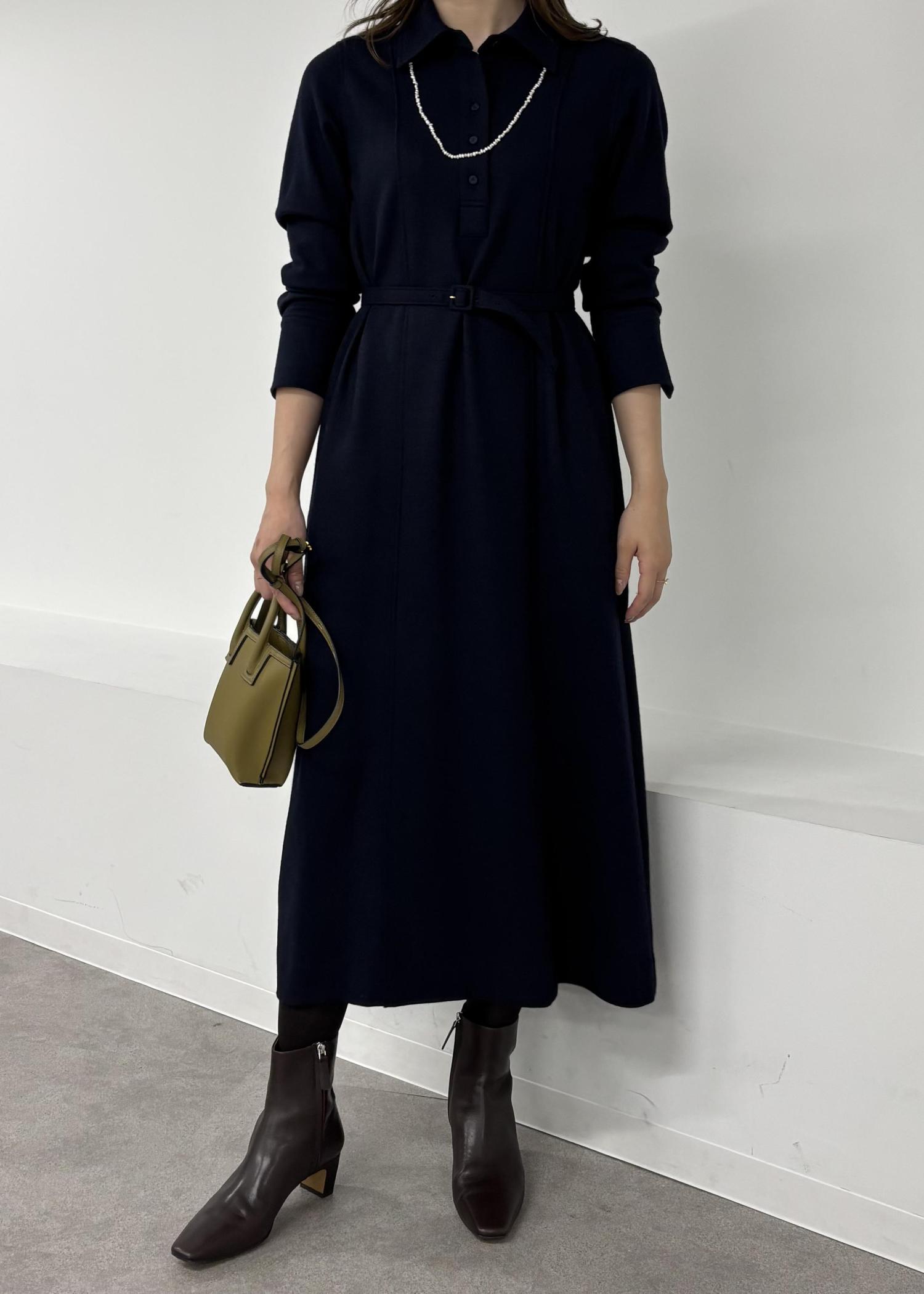 ROPÉウールジャージーワンピース/イージーケアネイビー / F¥36,300レビューウールジャージーの暖かく柔らかい着心地。襟付きで全体のシルエットもすっきりしているため、きれいめなシーンにもカジュアルにも馴染みます。全体のサイズ感はジャスト、ウエストの位置は少し高めに感じました。着丈は私の身長で膝下15cmあたり。