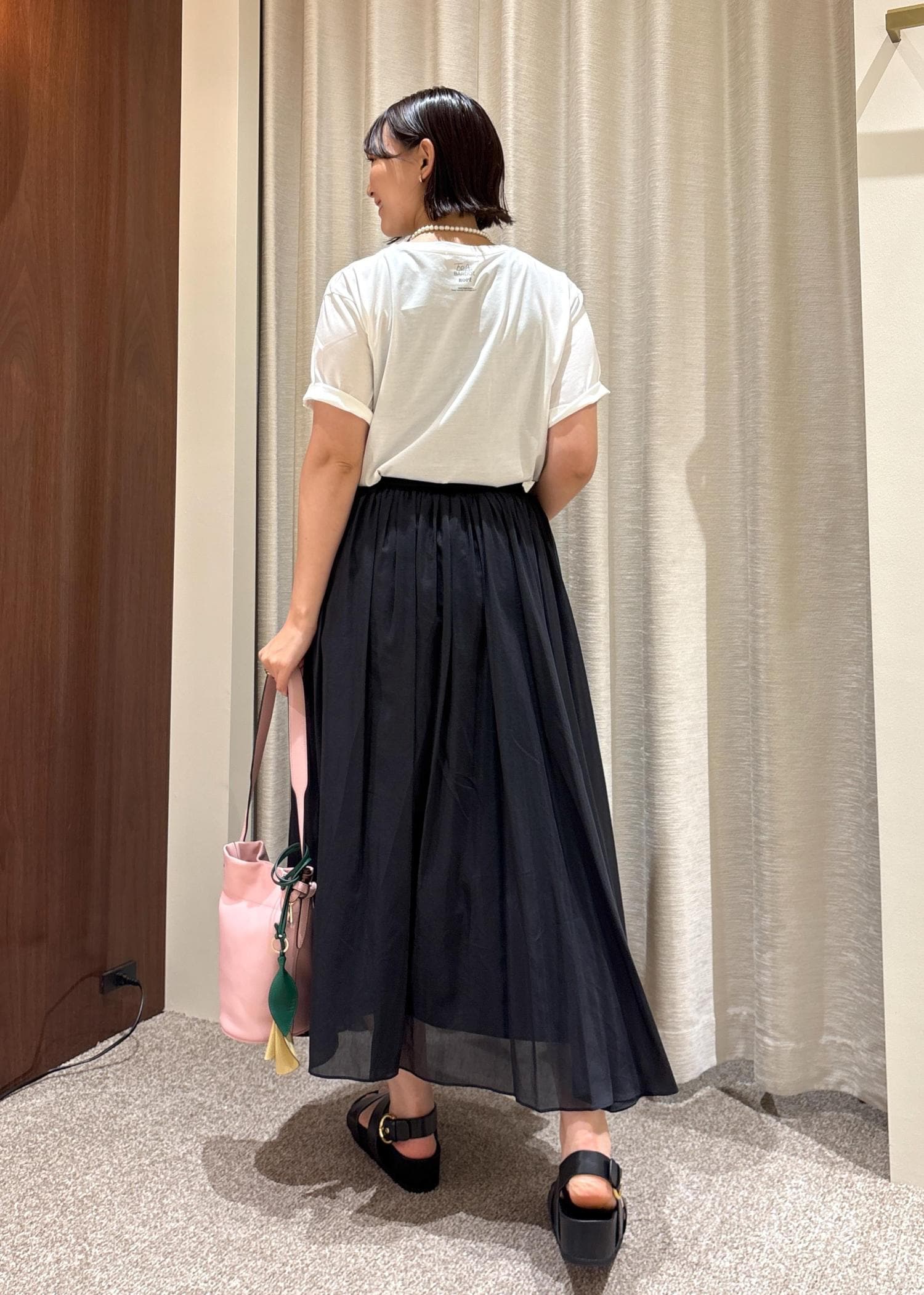 アウトレットROPÉ【洗える】コットンシルクスカートブラック / F¥11,000レビューフリーサイズを着用しております。